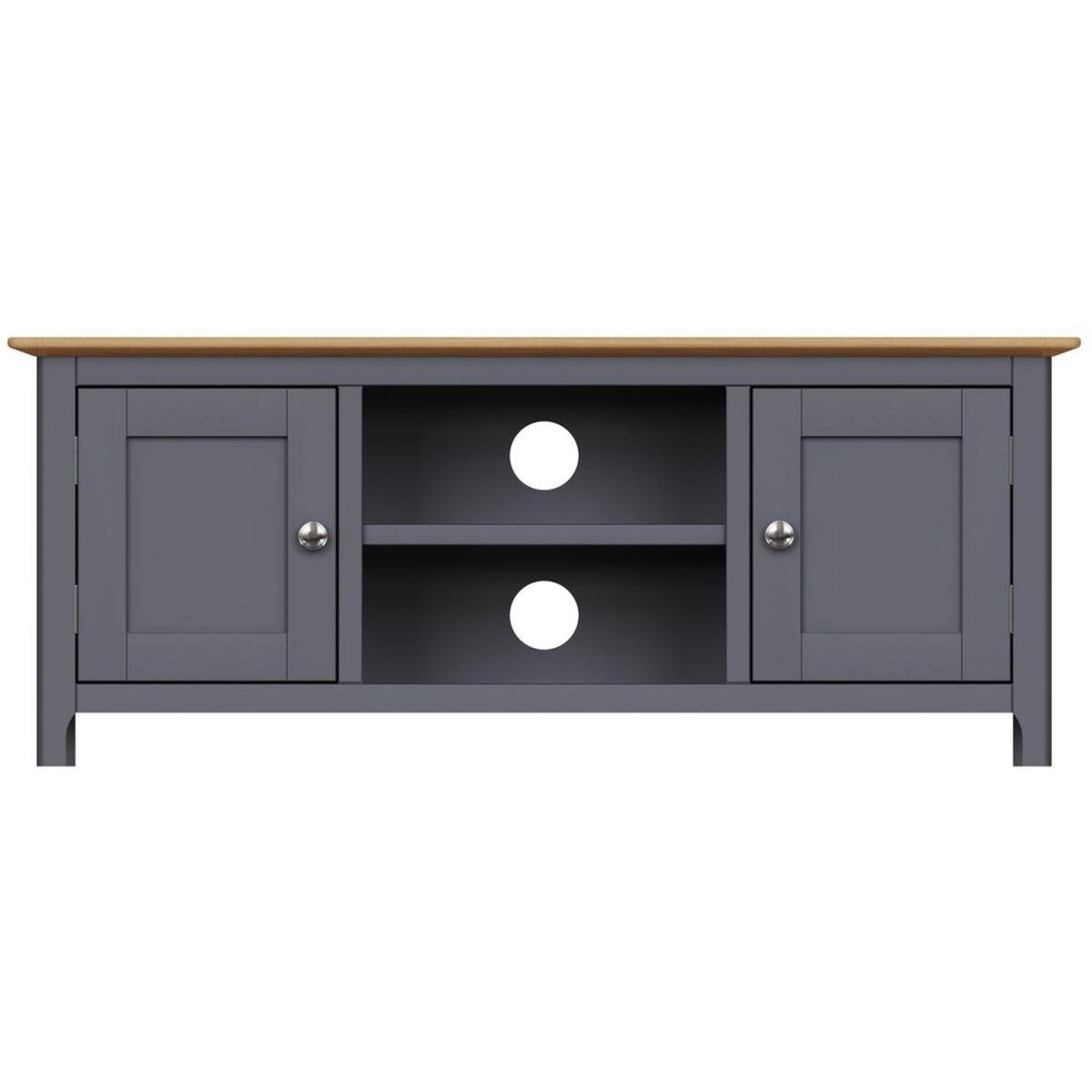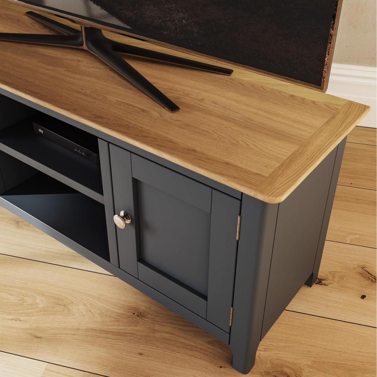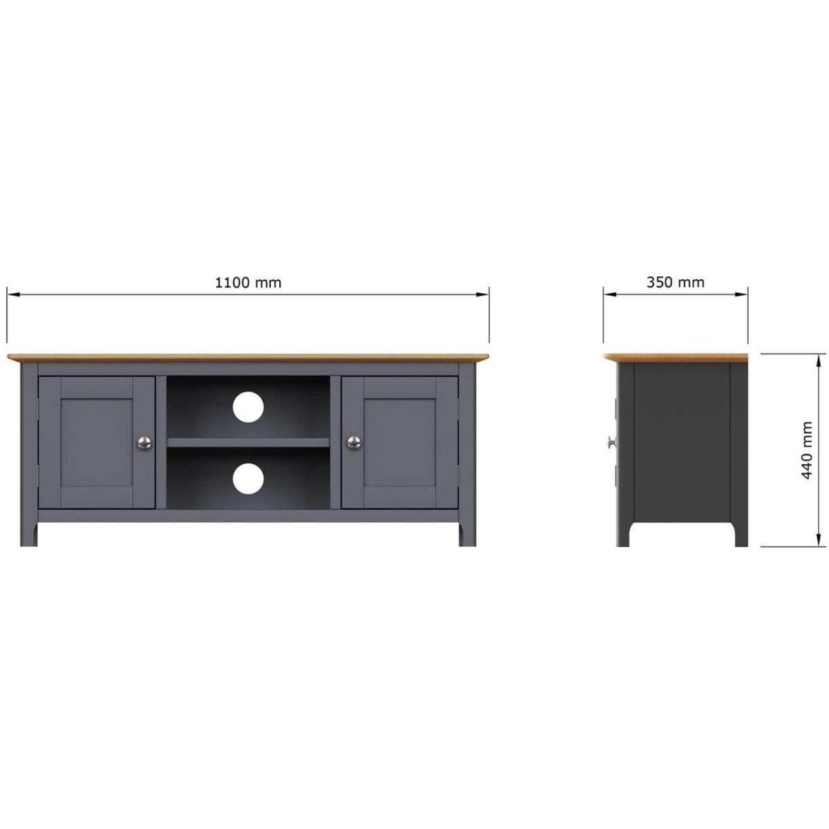 2 Door Solid Oak Ready Assembled TV Unit - Graphite Blue
