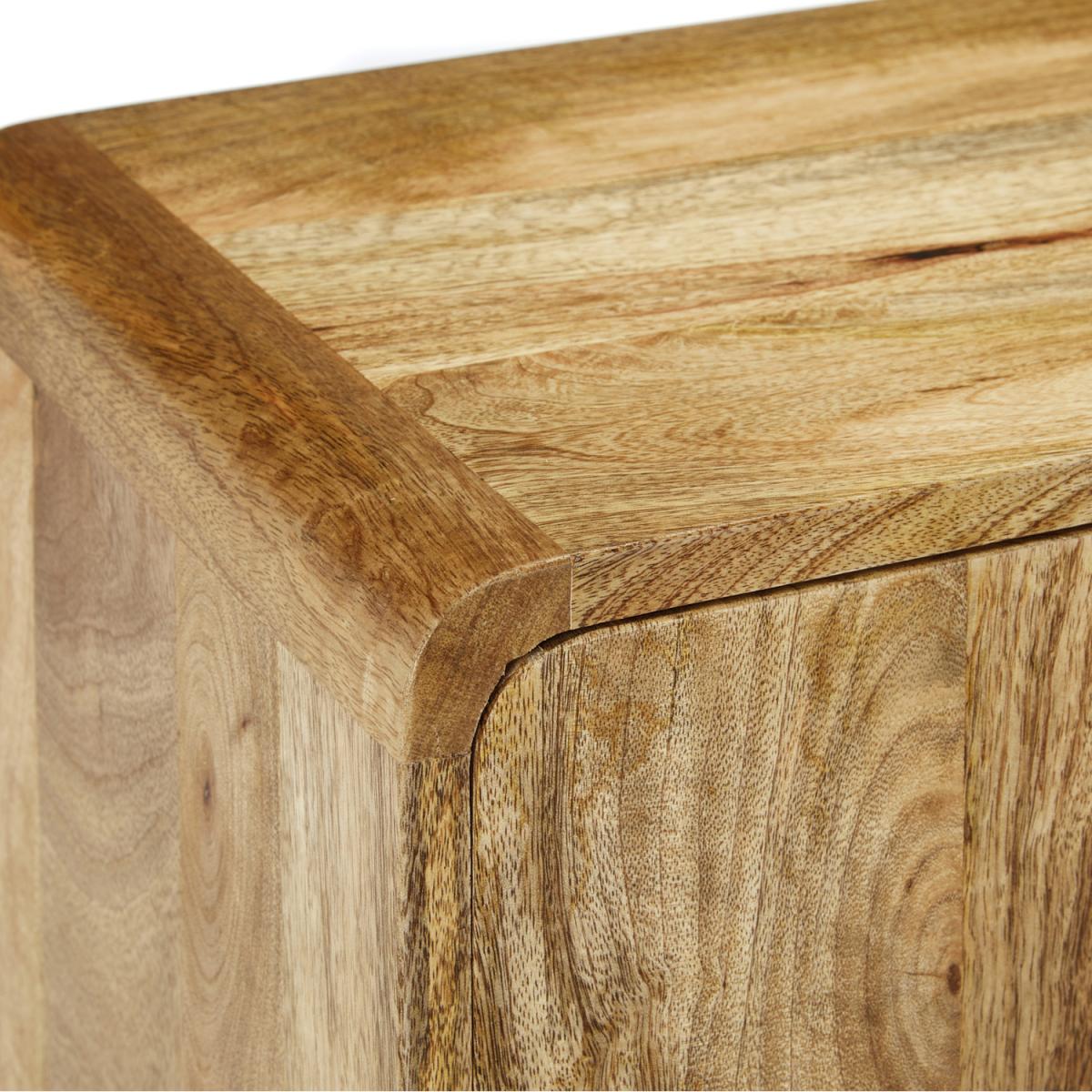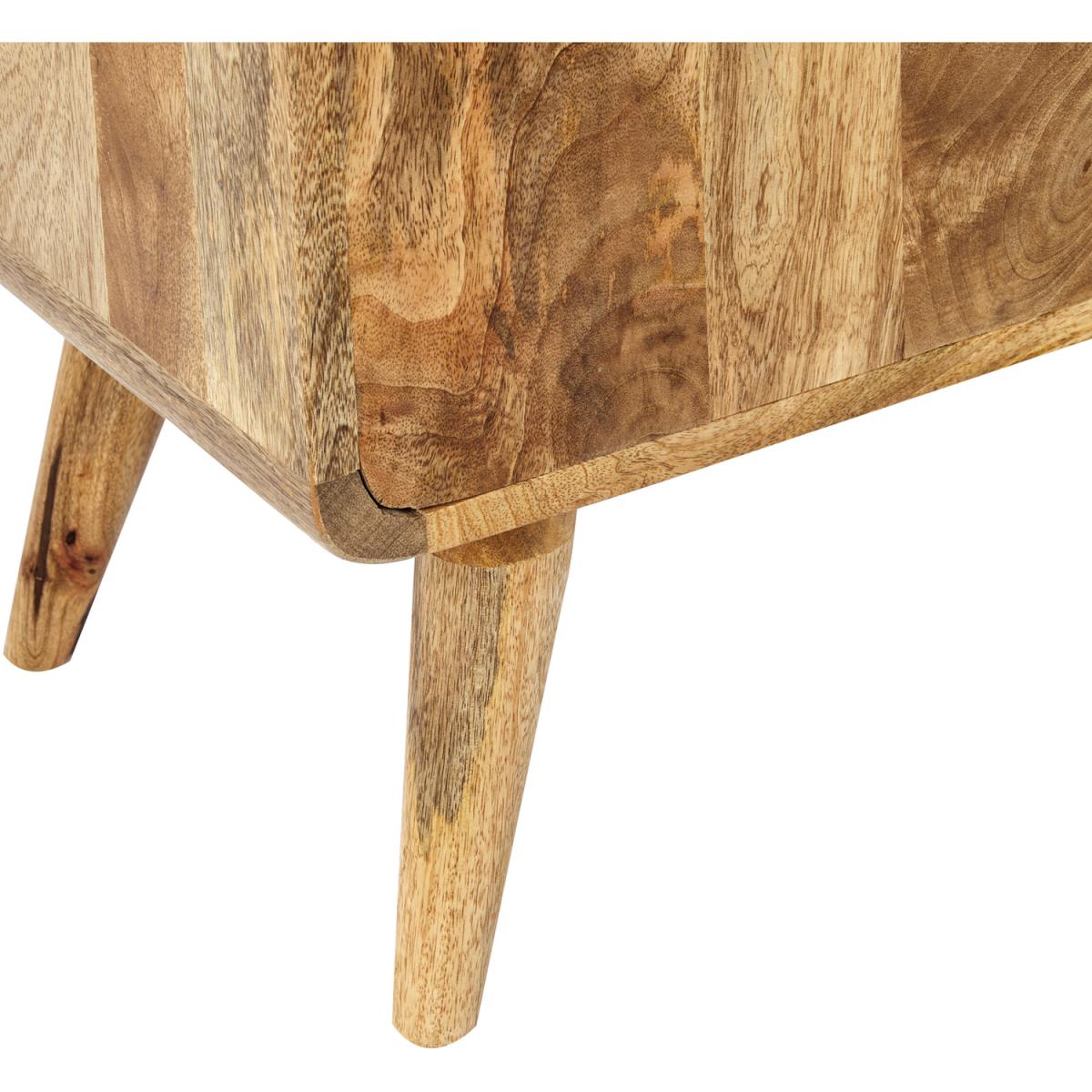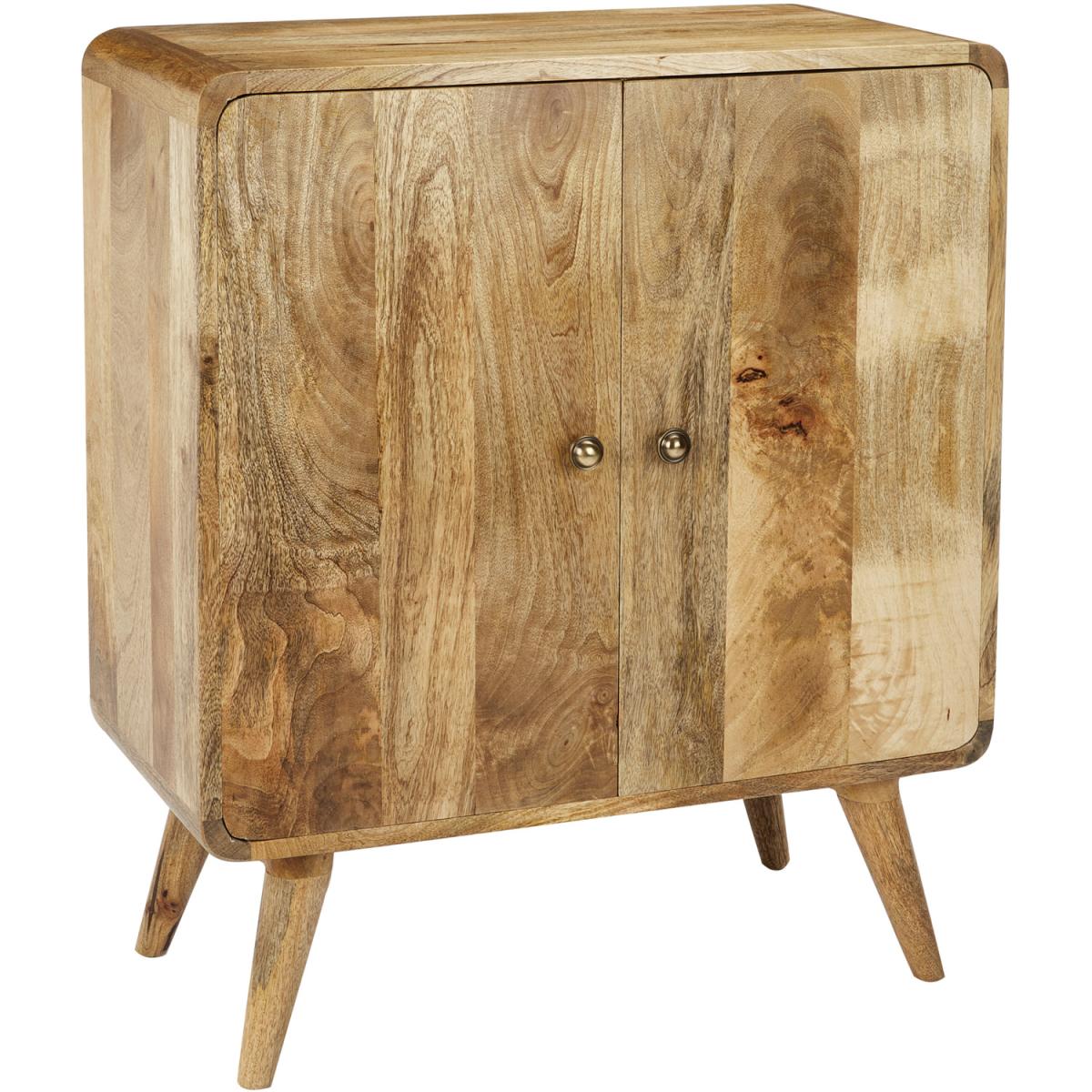 This mid-century style 2 door sideboard is made from 100% solid Mango wood (no veneer) and finished in a light oak stain and wax with a clear lacquer topcoat. With its rounded sides and hairpin legs the style lends itself to any modern or traditional home. This item will be delivered part assembled with only the legs to attach and it is ready to use.