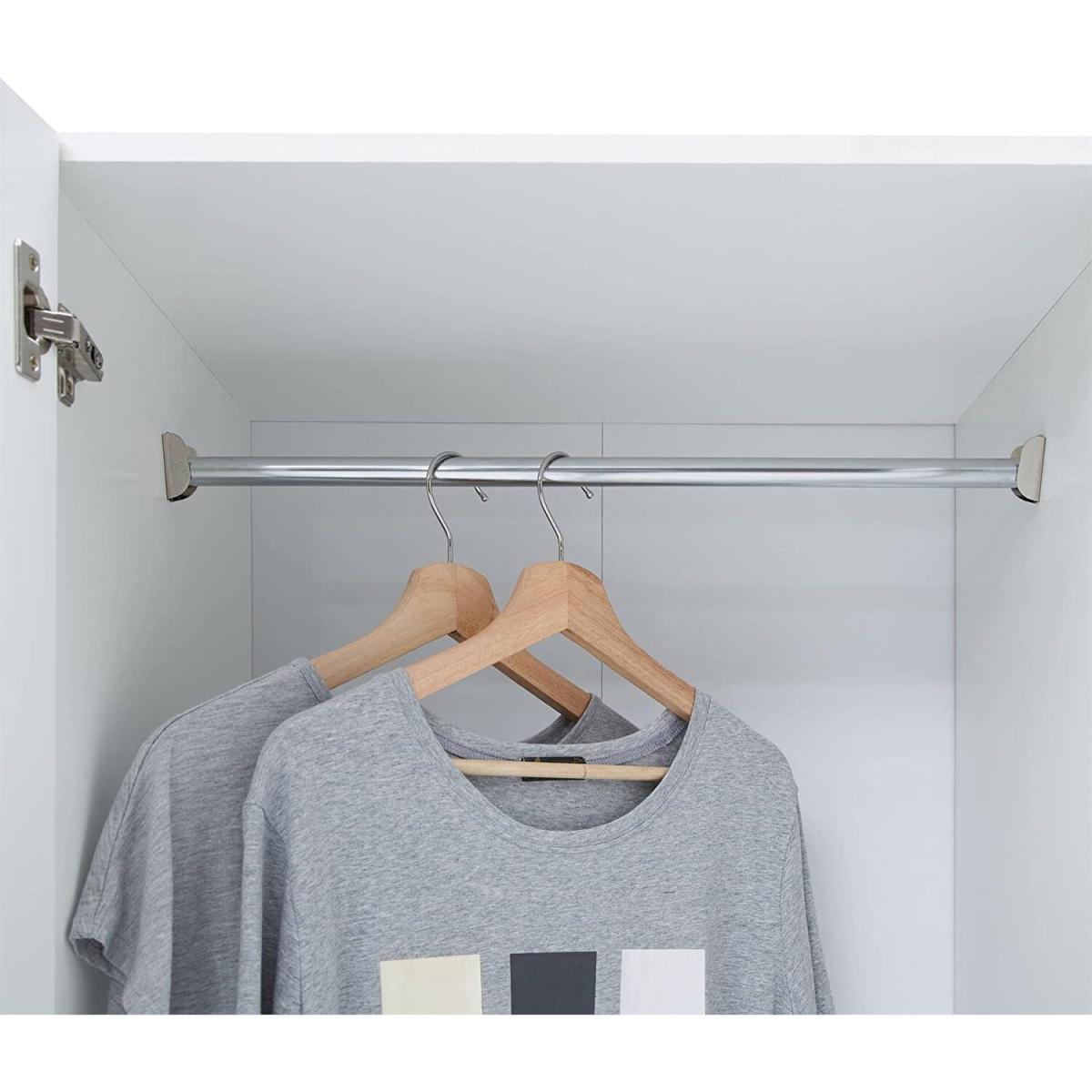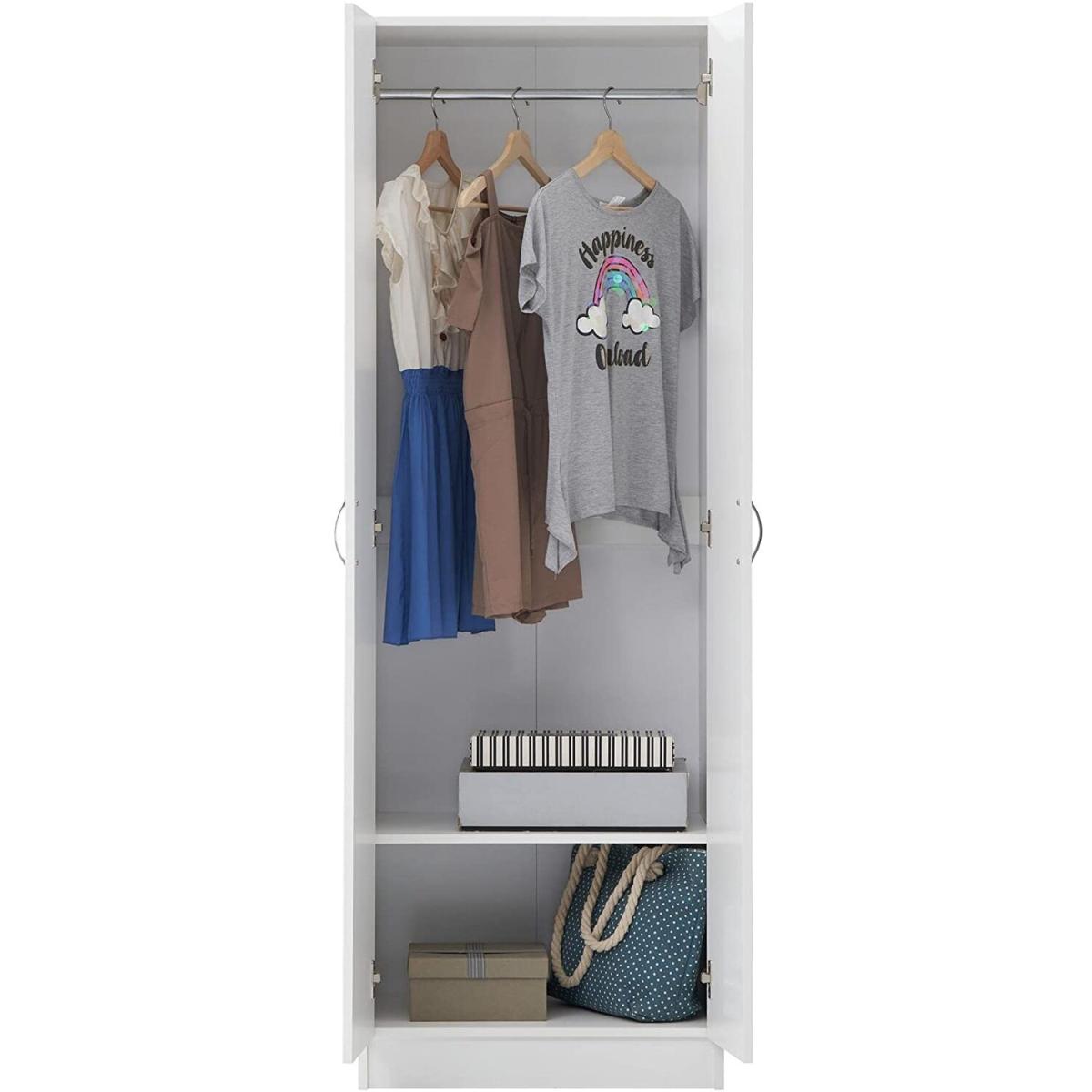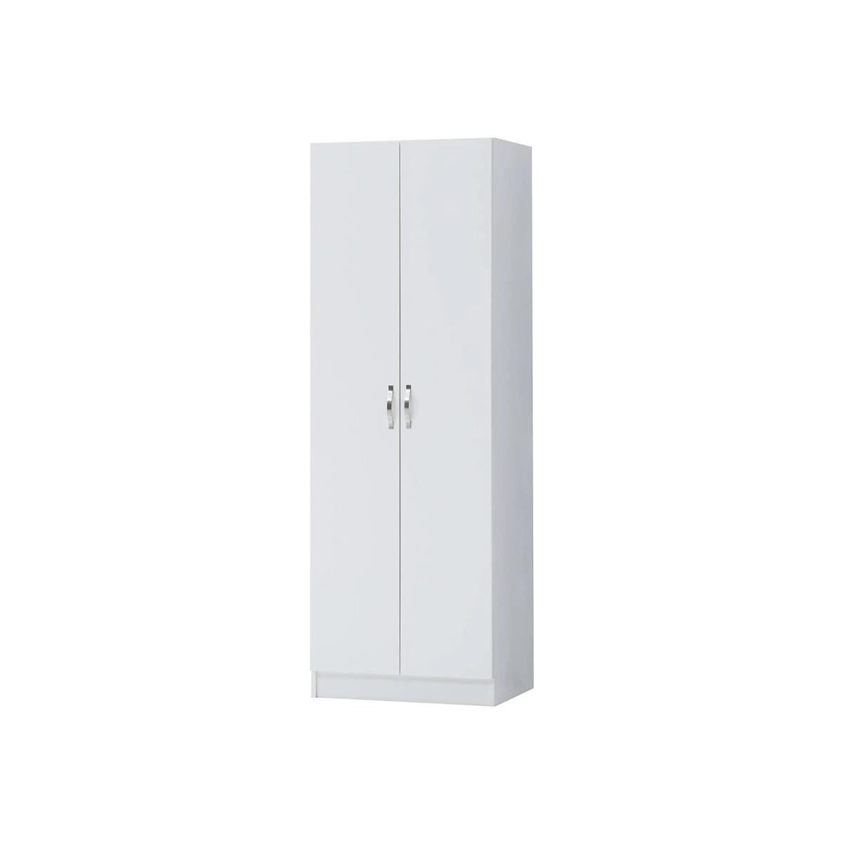 The Essentials 2 door wardrobe features a white finish with Metal handles. Inside, is a hanging rail and internal compartment, perfect for keeping dresses, shirts and suits crease free. A great addition in any interior which will add a classic style to your living space.