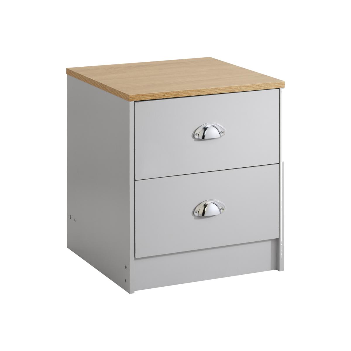 2 Drawer Bedside Table with Cup Handles in Grey Oak Effect - Grey