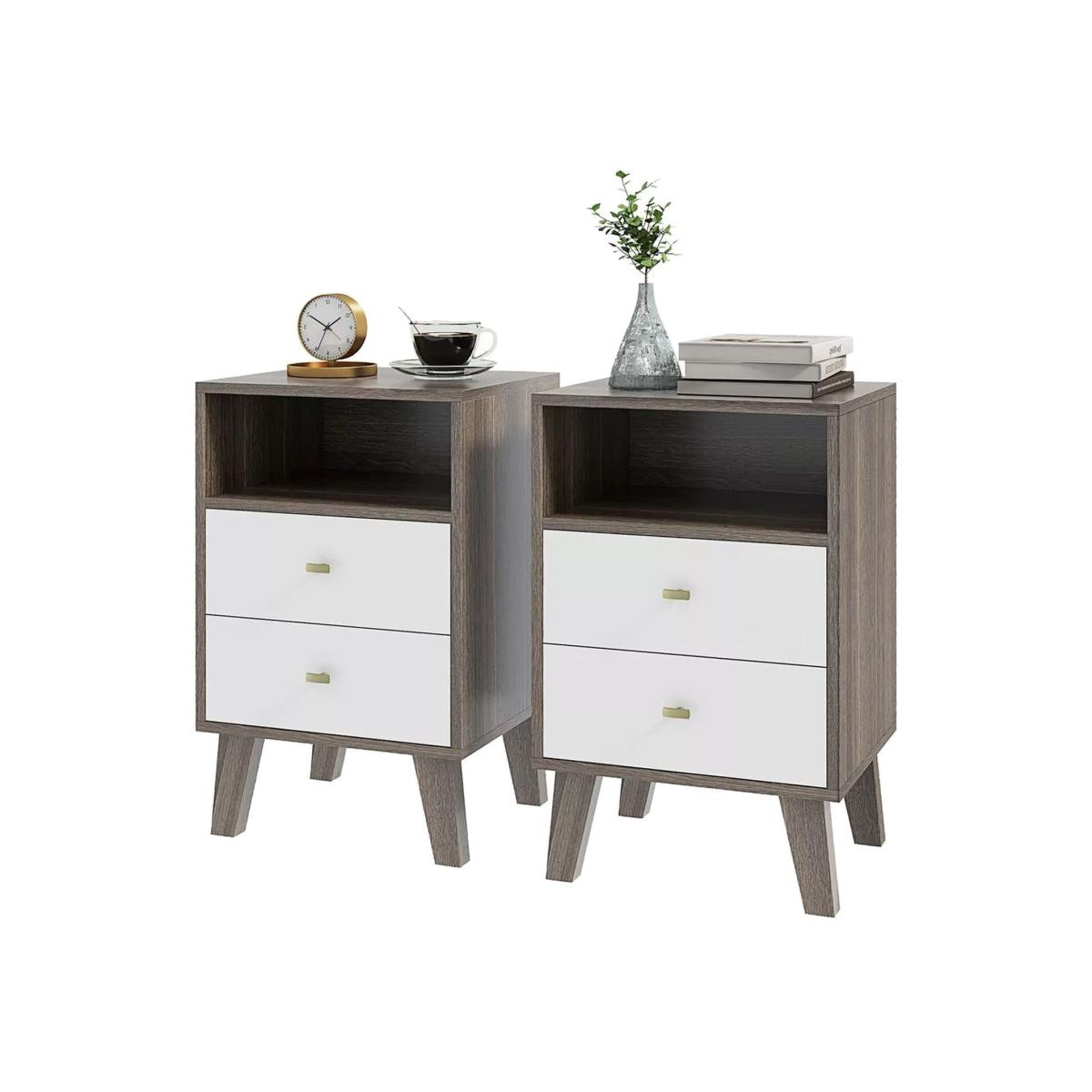 2 Drawer Bedside Table With Drawers Set of 2 - Grey and White