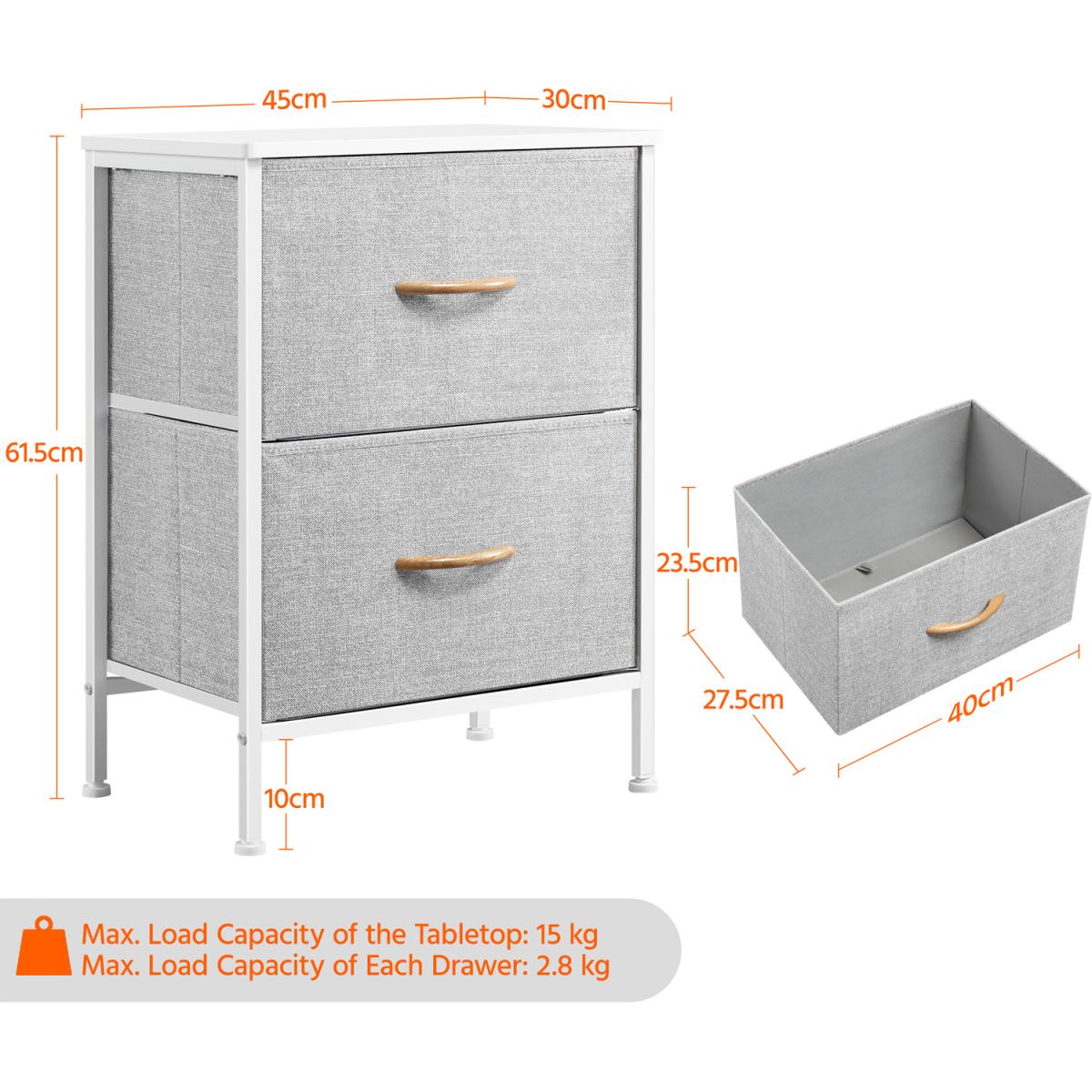 2-Drawer Fabric Storage Tower - Light Grey