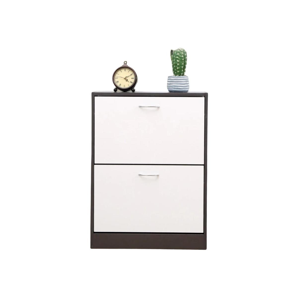 Our shoe cabinet is designed for efficient organization, boasting 4 compartments and 2 drawers to neatly store 15-18 pairs of shoes. Say goodbye to cluttered entryways and welcome a tidy and functional storage solution into your home. With its modern design, this shoe cabinet effortlessly elevates any living space. The sleek anti-slip surface enhances both safety and aesthetic appeal, making it a stylish addition to your home decor. Engineered for homes with limited space, this cabinet's free-standing design allows for flexible placement in various areas. Enjoy the freedom to optimize your space without sacrificing style or functionality. Tailor the shelf heights to accommodate your footwear collection, ensuring a personalized storage solution. Whether you have sneakers, heels, or boots, this cabinet adapts to your needs with adjustable shelves. Thanks to its compact design, this cabinet fits snugly against the wall, keeping your entryway clear and open. Maximize your space without compromising on style or functionality. Simple assembly instructions ensure a hassle-free setup process, while easy-to-follow care instructions make maintenance a breeze. Enjoy the convenience of a stylish and functional storage solution with minimal effort.