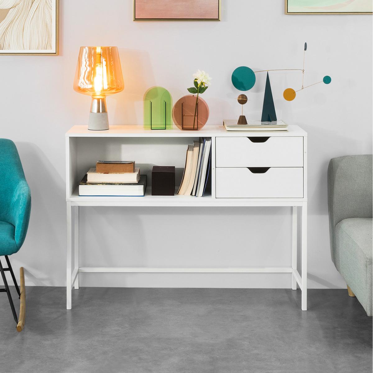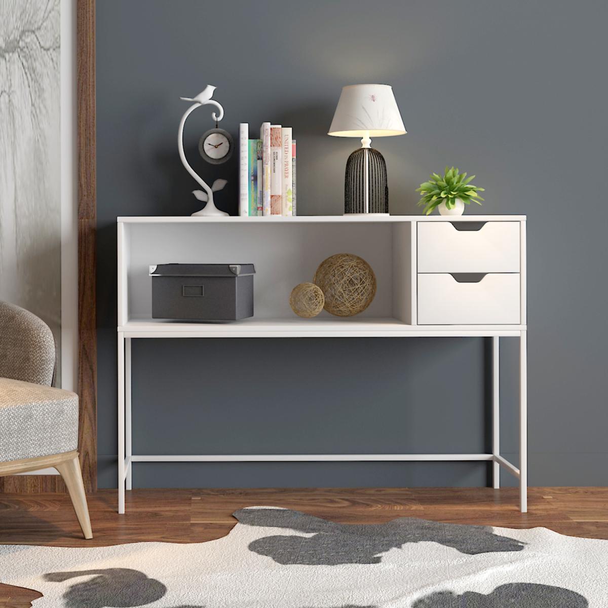 2 Drawers Console Table Hall Table - White