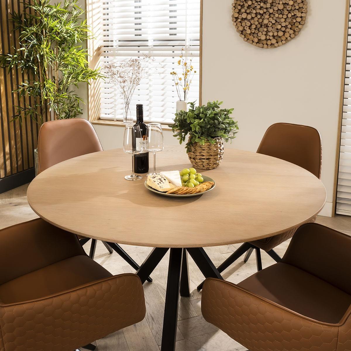 Crafted with a simple yet thoughtful outline, the Emma carver dining chair with arms was designed for comfortable dining. Upholstered in tan faux leather which adds a touch of opulence to any setting. The dining room chair has a swivel base with a black metal finish for a blend of modern aesthetics and plush comfort. The special thing about the Emma dining chair is its modern quilted texture on the outer shell, creating a stunning visual and tactile effect. The chair is meticulously detailed with quality piping around its edges, highlighting its premium craftsmanship. The full upholstery and padded base ensure maximum comfort, making it the perfect choice for those long, lingering dinners with loved ones. Designed for convenience, this chair boasts a 4-point swivel base with a black metal finish. This feature not only adds a contemporary flair to your dining area but also allows for easy mobility and access. Whether you're hosting a formal dinner party or simply enjoying a cosy meal at home, the dining chair combines style and functionality to make every dining occasion special. Get the perfect blend of modern aesthetics, plush comfort, and durability with this set of Emma carver dining chairs. Elevate your dining experience to new heights with this stunning chair that's sure to be the centerpiece of your dining area. W62cm D62cm H87cm Seat Height Set of 2 Dining Chairs
