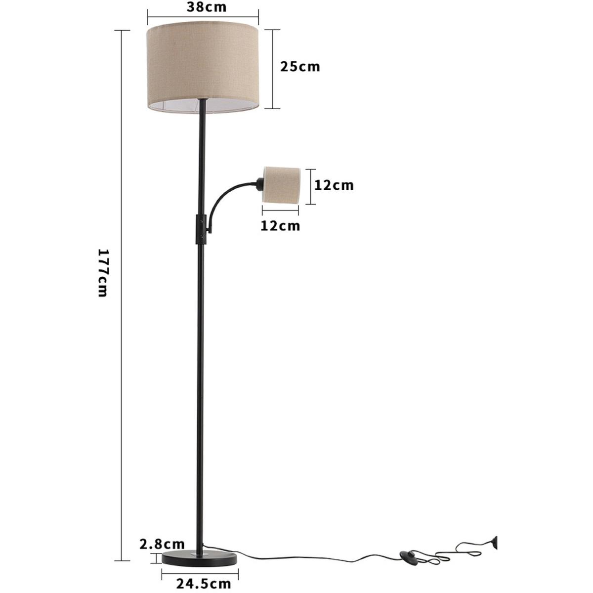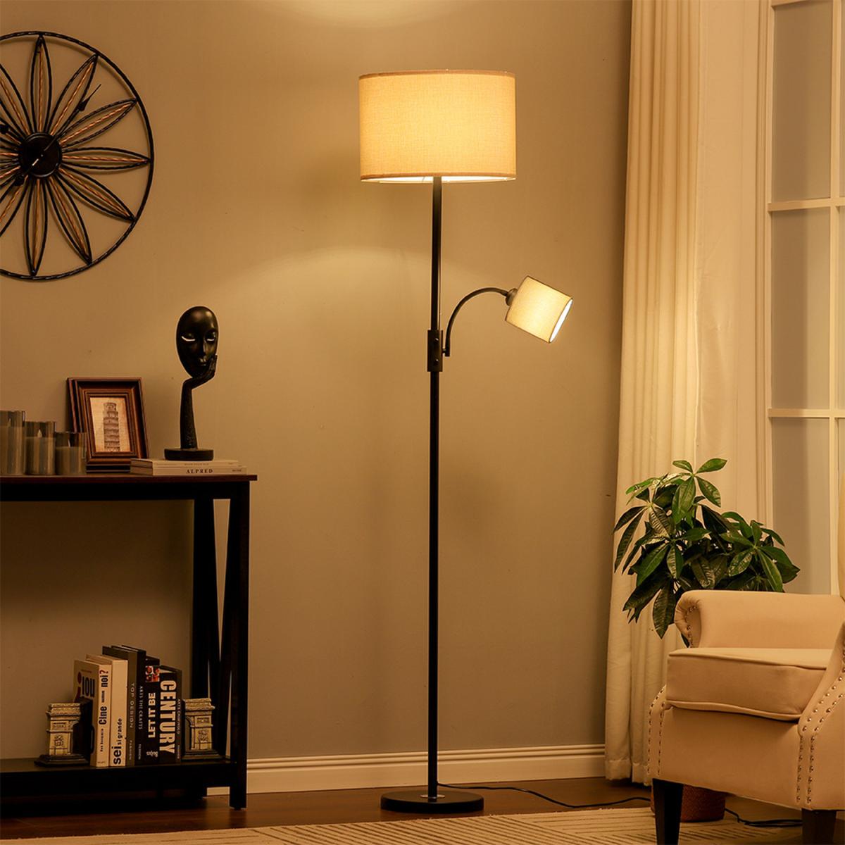 This floor lamp adapts with a weighted metal legs, holds the thick central pole and lamp securely. The up lamp can provide the bright light in your whole room, the side lamp as a reading lamp for you to use(bulb is not included). Linen fabric shade is thick enough to soften the beams and minimize glare, and the 360 degrees rorate the side lamp pole to adjust the best lighting angle, really comfortable and eye-care. Foot switch design is not only convenient but also gives the pole lamp an elegant look, without cords exposed. Both lamps can be controlled independently, there are two toggle swtichh on the middle of the long lamp pole(Main light button and Side lamp button). This floor lamp is easy to install, just take few minutes, follow the floor standing lamp instruction, easily to place it in corners and tight spaces. this reading floor lamp will blend nicely with your furniture and easily with a range of bedroom, living room and even office decor.