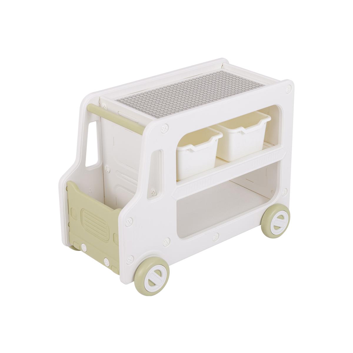Look no further than our 2 in 1 toy storage organizer! Crafted from premium HDPE material, this toddler organizer features a stable frame ensuring durability and safety. With a 2-tier opening shelf, deep compartments, and two large storage baskets, it provides ample space to neatly organize toys while cultivating children's storage habits. The convenient handle and smooth wheels make it easy to move around, and the easy-to-clean surface saves you time and energy.