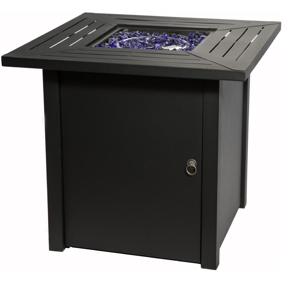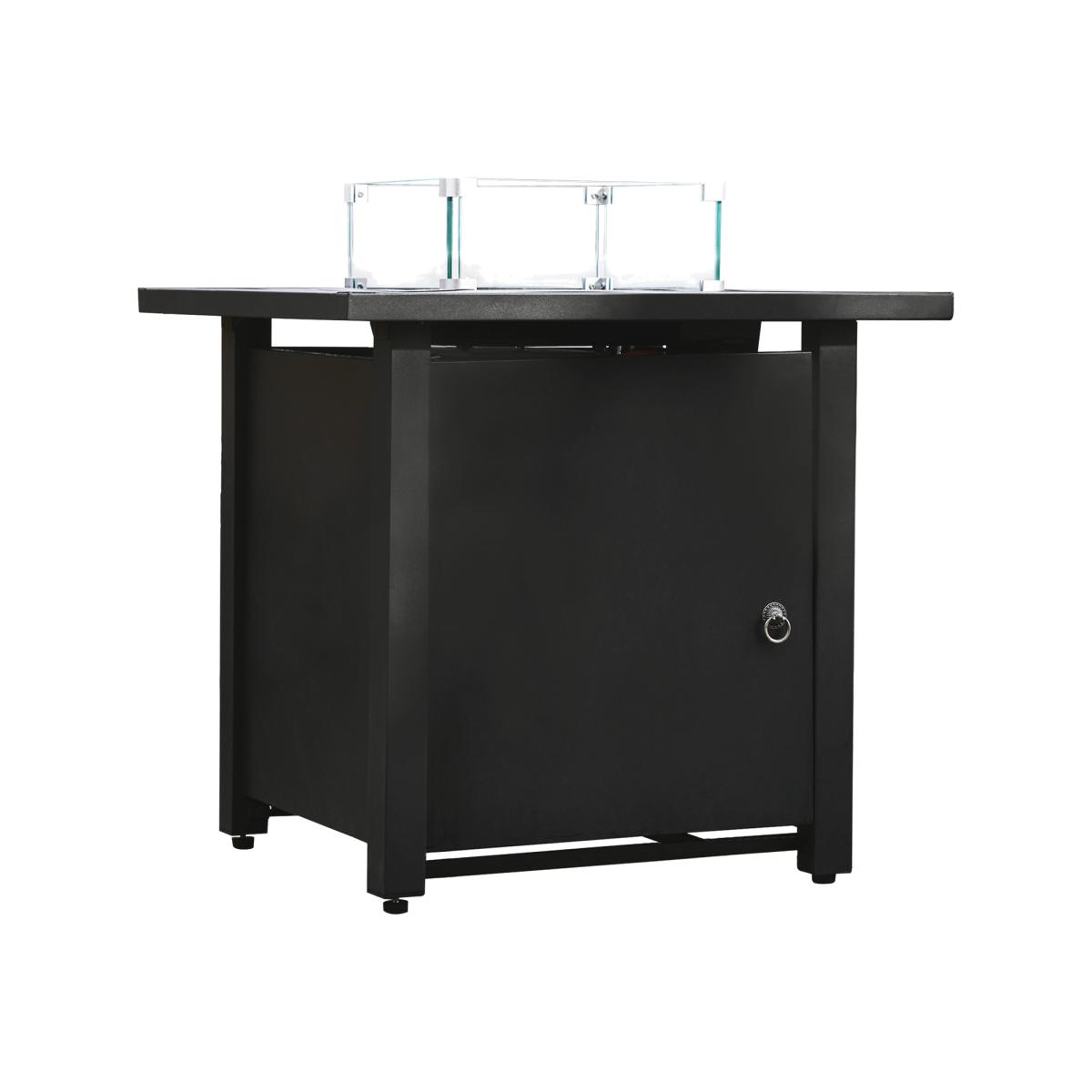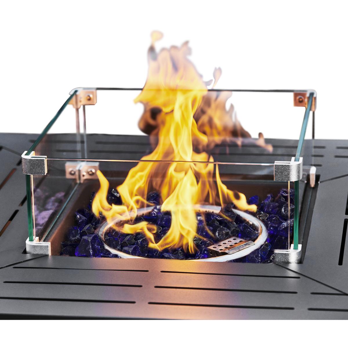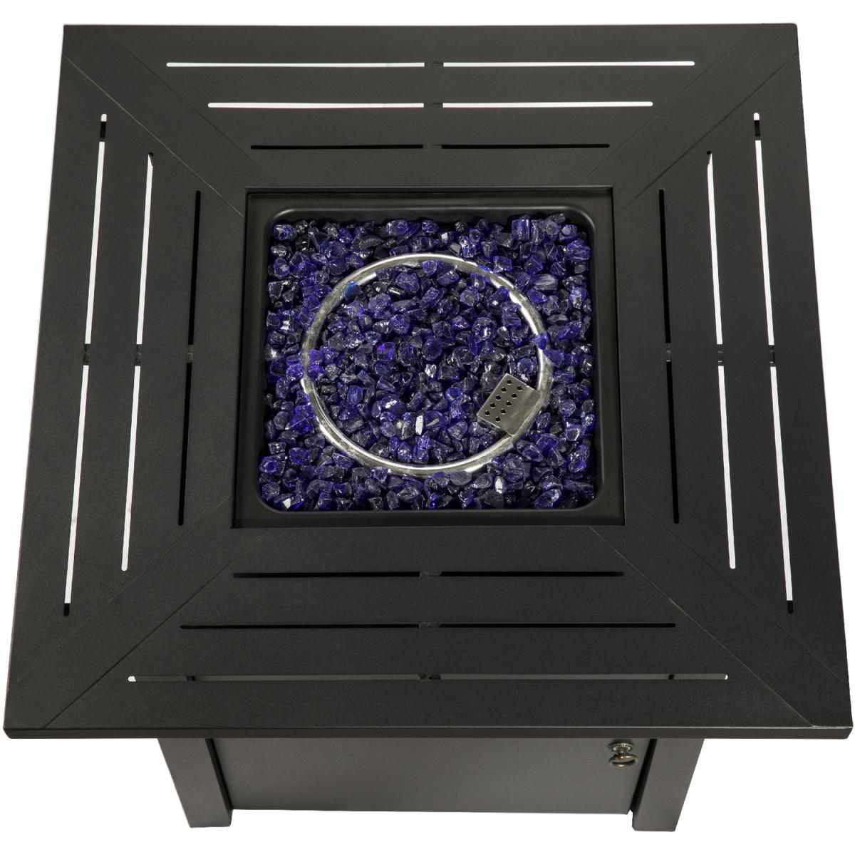 Enjoy the warm glow of a gas firepit with the Teamson Home rust-resistant steel square tall gas fire pit table or outdoor heater. The statuesque black firepit is sturdy, yet elegant and is a wonderful addition to any garden or patio furniture area. The gas fire pit is easy to use with any propane gas bottle source. This outdoor gas-burning fire pit comes with lava rocks and easy ignition for ease of use. It also comes with a glass windscreen to help with flame control and safety.