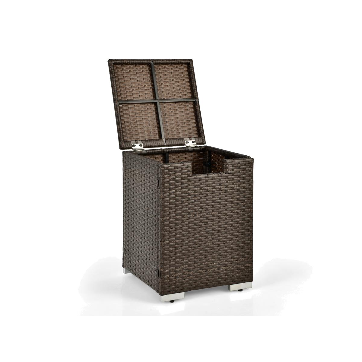 The table not only serves as a perfect cover for a 9 kg propane gas cylinder (not included), but also can transform into a charming side table when the lid is closed. The hand-woven rattan surface not only adds to its visual appeal but also ensures longevity. Plus, the heavy-duty frame boasts durability and resistance to deformation and rust. Embrace the convenience and functionality of the gas tank storage side table! The thoughtful design, sturdy construction, and elegant look make it a perfect addition to your outdoor furniture collection.