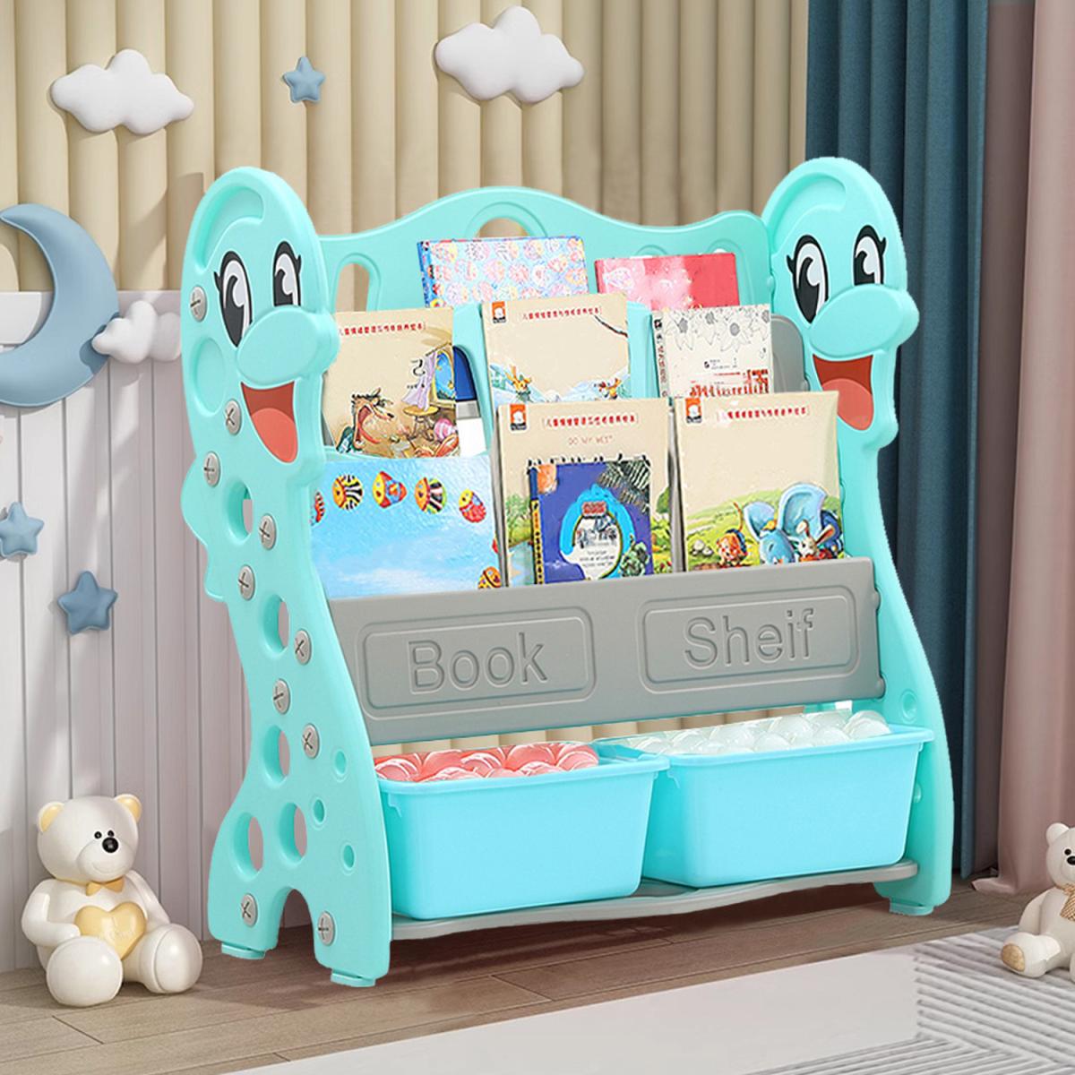 2 in 1 Kids Dolphin Book Rack Toy Boxes - Green