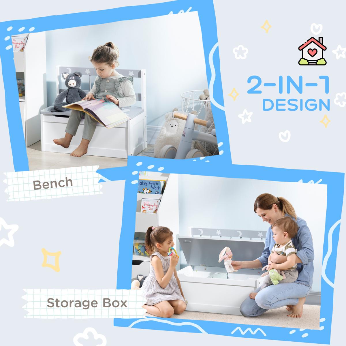 2 in 1 Kids Toy Storage, Wooden Toy Box, Toy Chest with Safey Rod - Grey