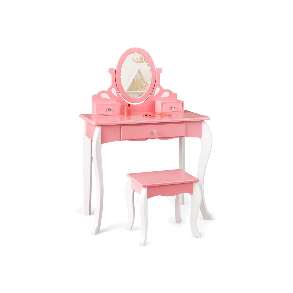 2-in-1 Kids Vanity Table Chair Set - Pink