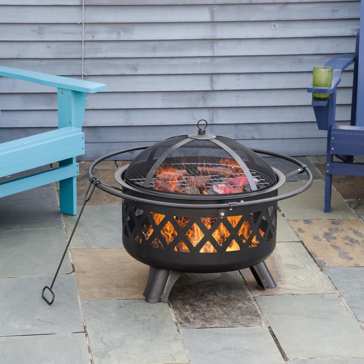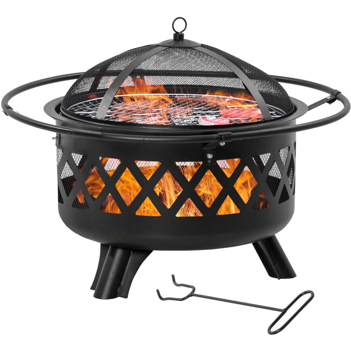 2-in-1 Outdoor Fire Pit with BBQ Grill and Spark Screen Cover - Black