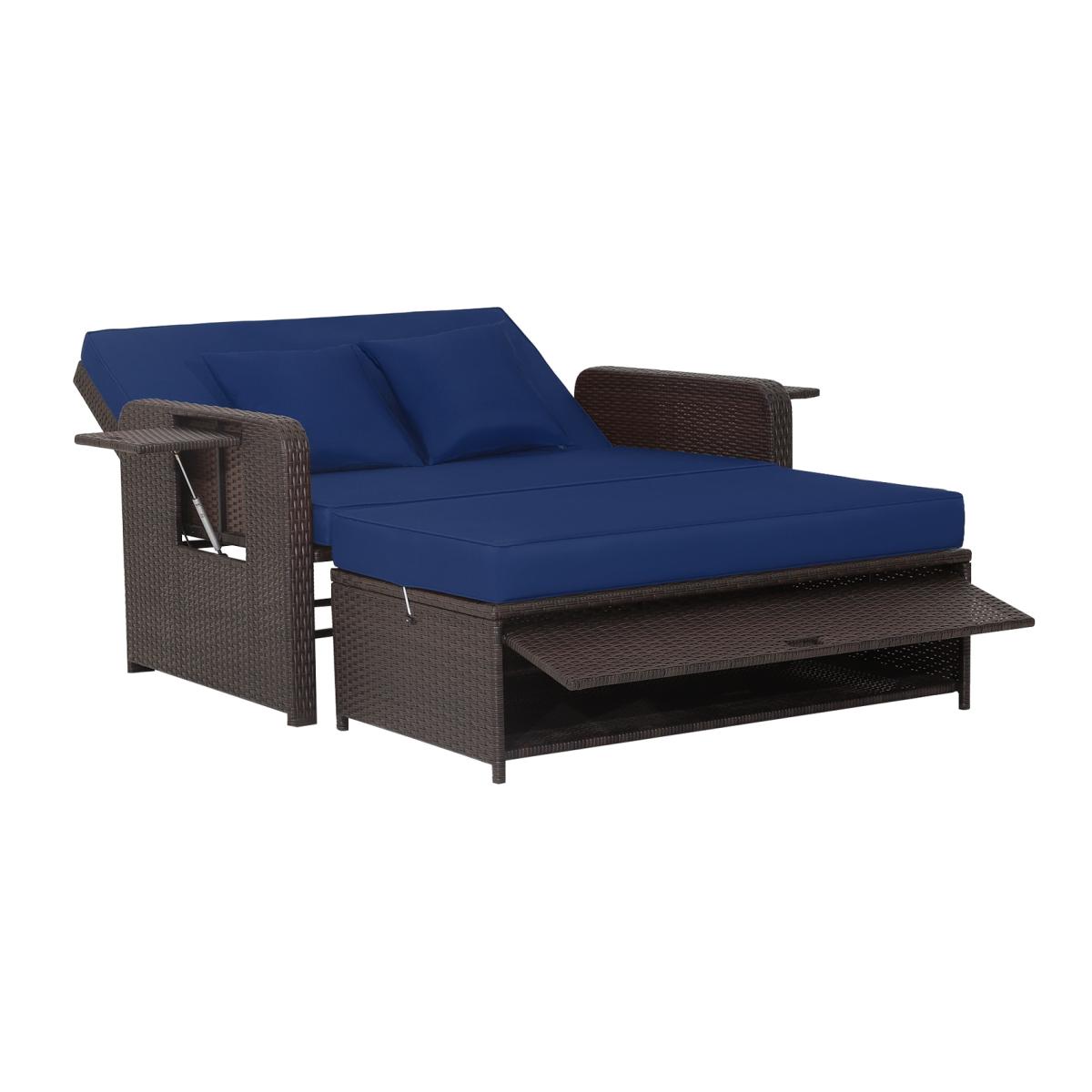2-in-1 Patio Rattan Daybed Set - Blue