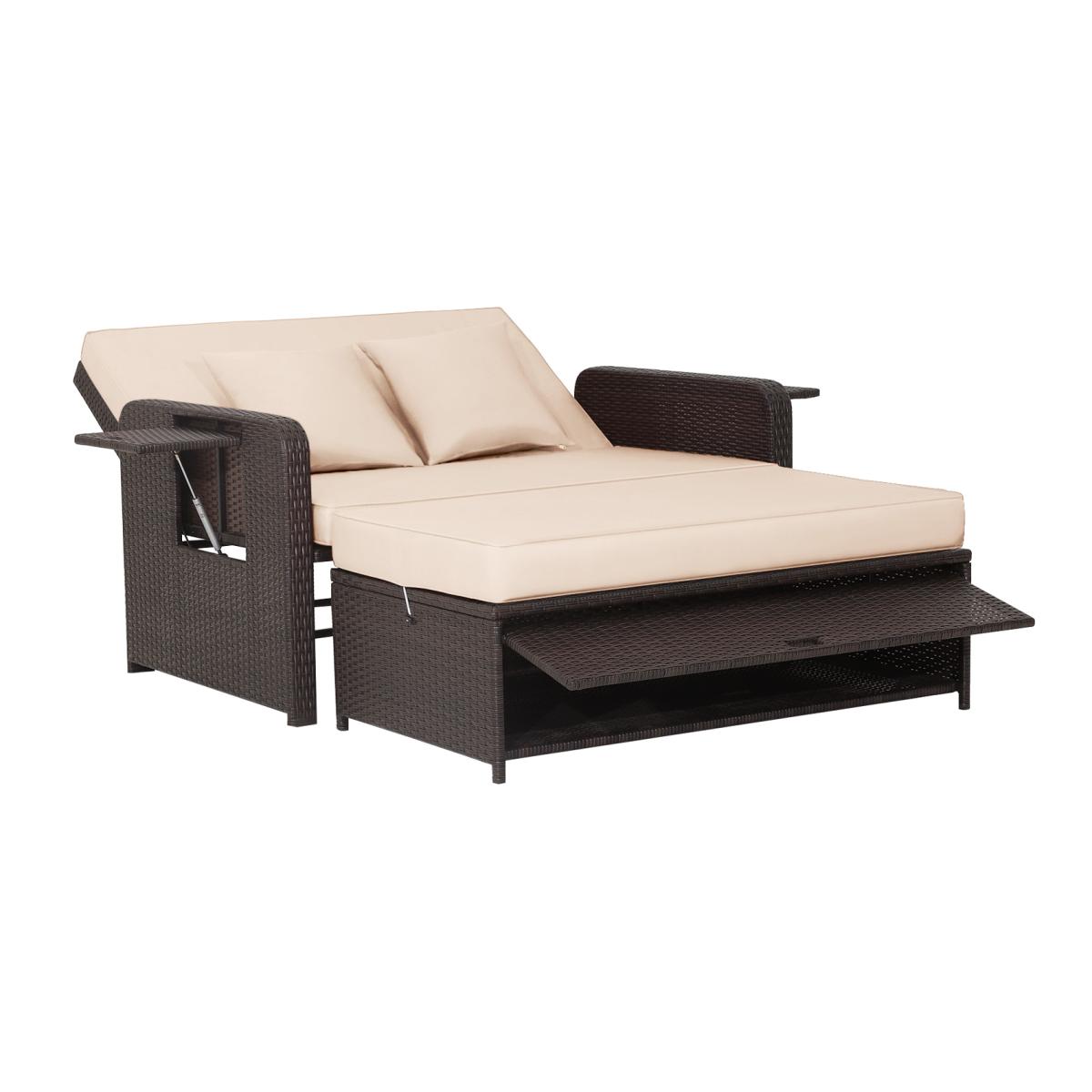 Including a loveseat sofa and a multifunctional ottoman. Featuring a 4-position backrest, the loveseat allows you to sit, recline or even lie flat on it. 3 cushions and 2 pillows which are filled with elastic sponge make the seat more comfortable to sit in. And the smooth zippers are designed for easy removal and maintenance. 2-in-1 Patio Rattan Daybed Set - Brown