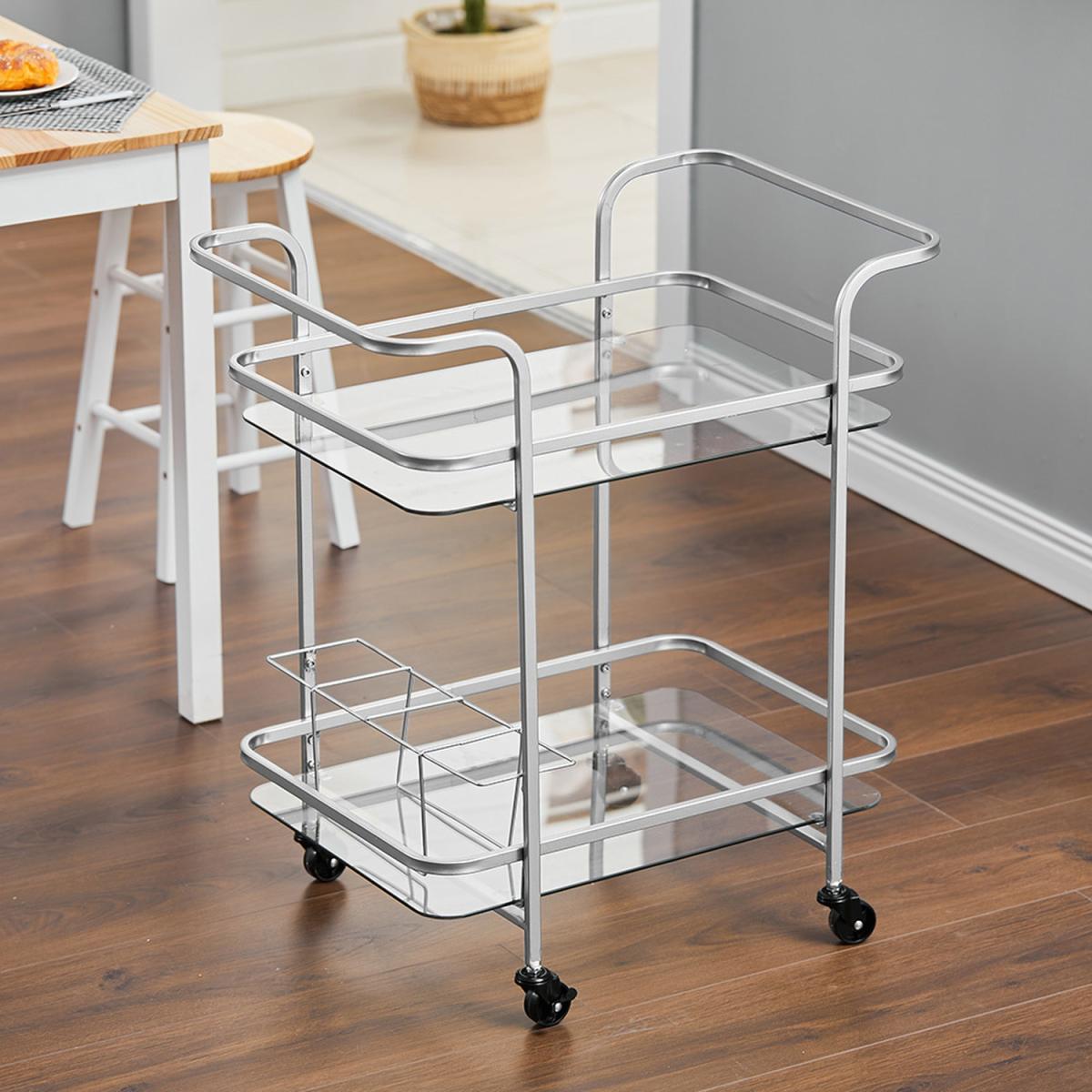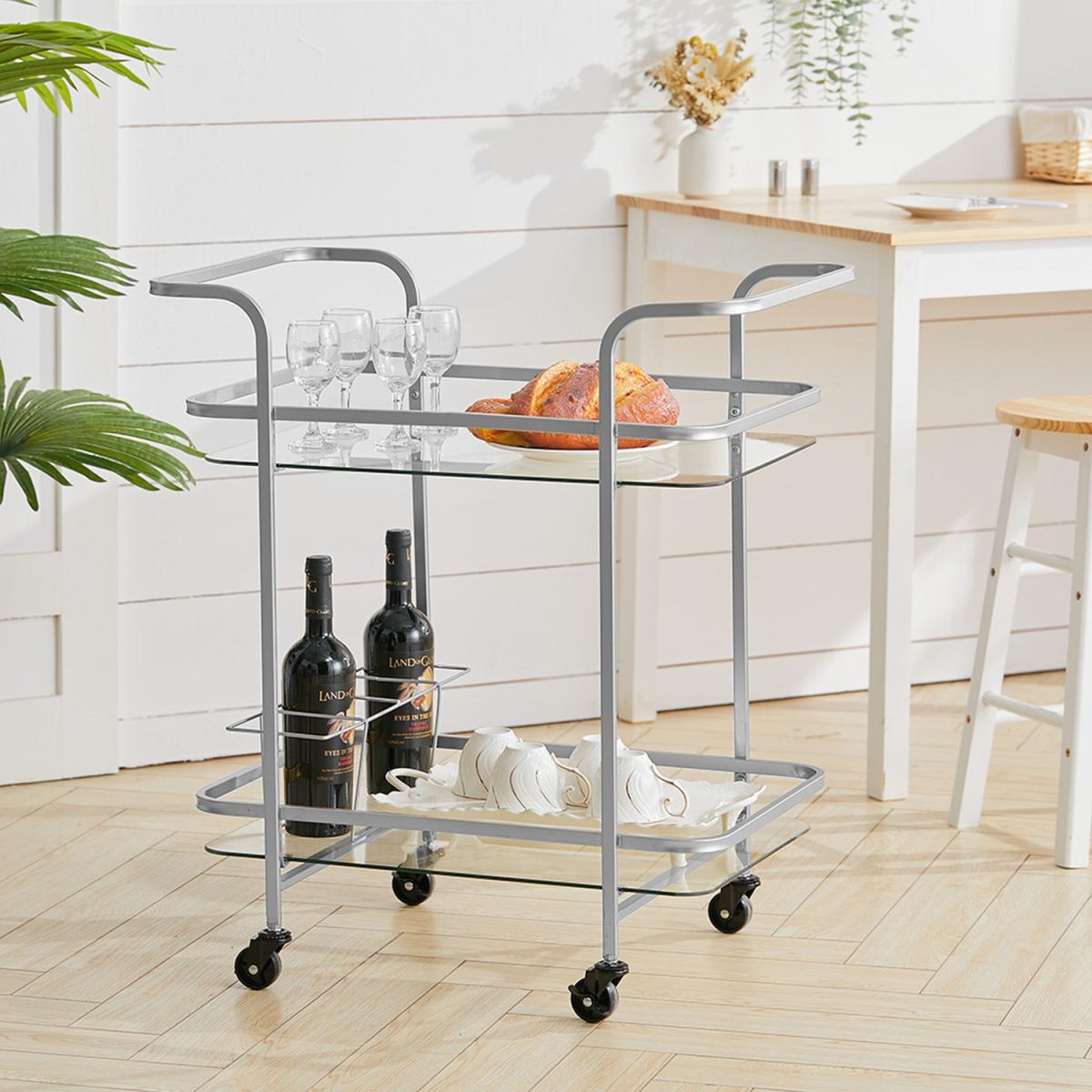 Elegant and modern serving and display trolley, stylish and fashionable design are compatible seamlessly with any room decor and also adds a touch of elegant charm to your room. It is a simple but strong structure, shelves for displaying drinks, wine, glasses or more, in order to keep your room tidy, other layers design could help you compartmentalize the items. This trolley is useful in several scenarios. Perfect for living room, bedroom, office, etc, which is the best choice for home furniture. With the simple design of this side table, it is easy to install, all necessary parts are in the package, you can install this table within a few minutes.