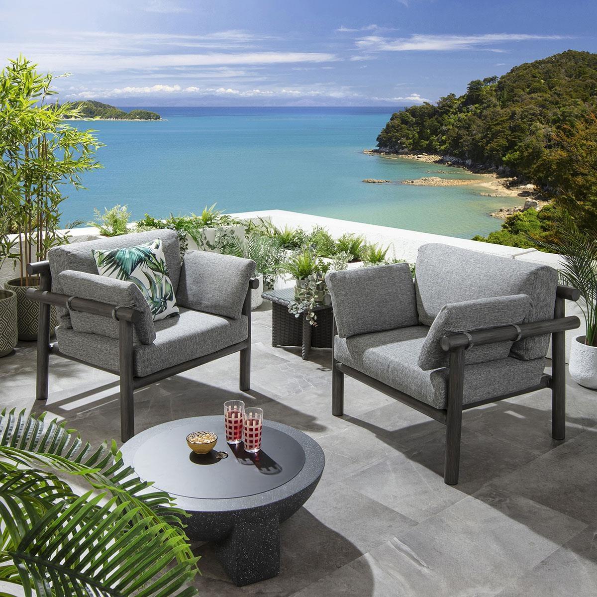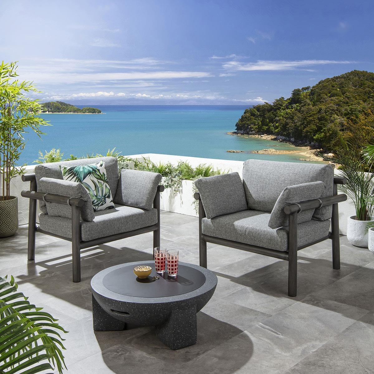 Elevate your outdoor sanctuary with this set of 2 Mia aluminium garden armchairs, boasting rustic charm and modern luxury. Crafted with durable aluminium, this outdoor chair set features a captivating log-style design with a grey wood effect finish, perfect for enhancing any garden or patio space. Unveil the allure of the Mia aluminium garden furniture set, comprised of two inviting armchairs. Embrace its contemporary elegance and seamless integration into your outdoor decor. With its distinctive log-style aesthetics, this set offers a timeless appeal that complements any outdoor setting with sophistication and comfort. Delight in the patio set's intricate log-style craftsmanship, meticulously replicated on its aluminium frame. The wood effect finish exudes the warmth of natural wood while ensuring the durability and weather resistance of aluminium. Experience the perfect fusion of rustic allure and modern functionality in this exquisite outdoor furniture ensemble. Sink into blissful relaxation on the plush high-density foam cushions, adorned with premium woven outdoor fabric. Effortlessly maintain their pristine condition with the included covers, ensuring lasting comfort and elegance. Store the cushions when not in use to preserve their quality, allowing you to enjoy the timeless beauty and comfort of our luxury aluminium garden sofa set for years to come. Armchair Size W90cm D85cm H76cm Aluminium frame - no assembly required Weather covers are included