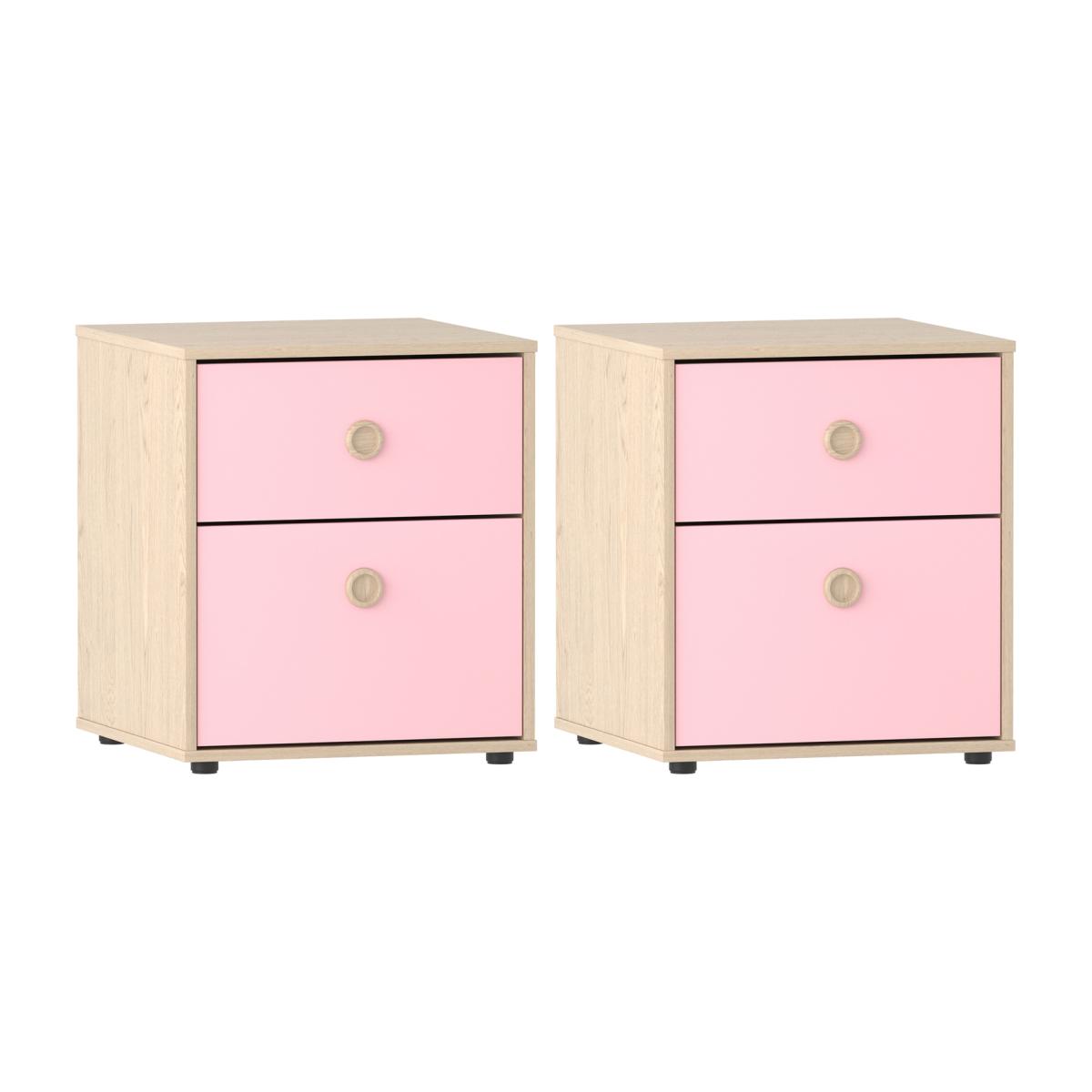 2 Neptune 2 Drawer Bedside Tables - Pink and Oak