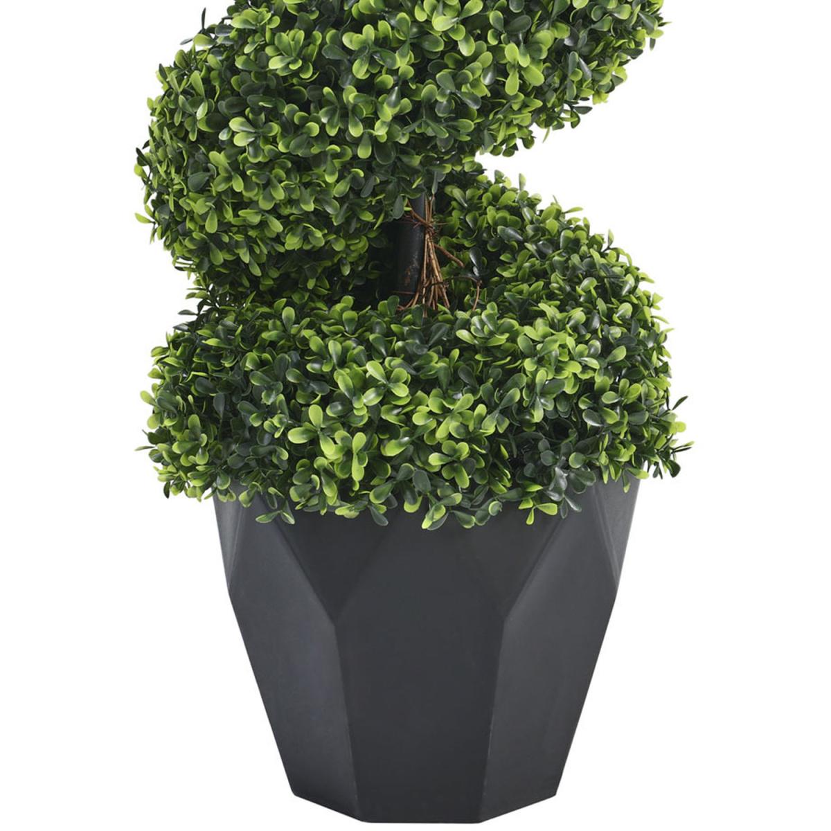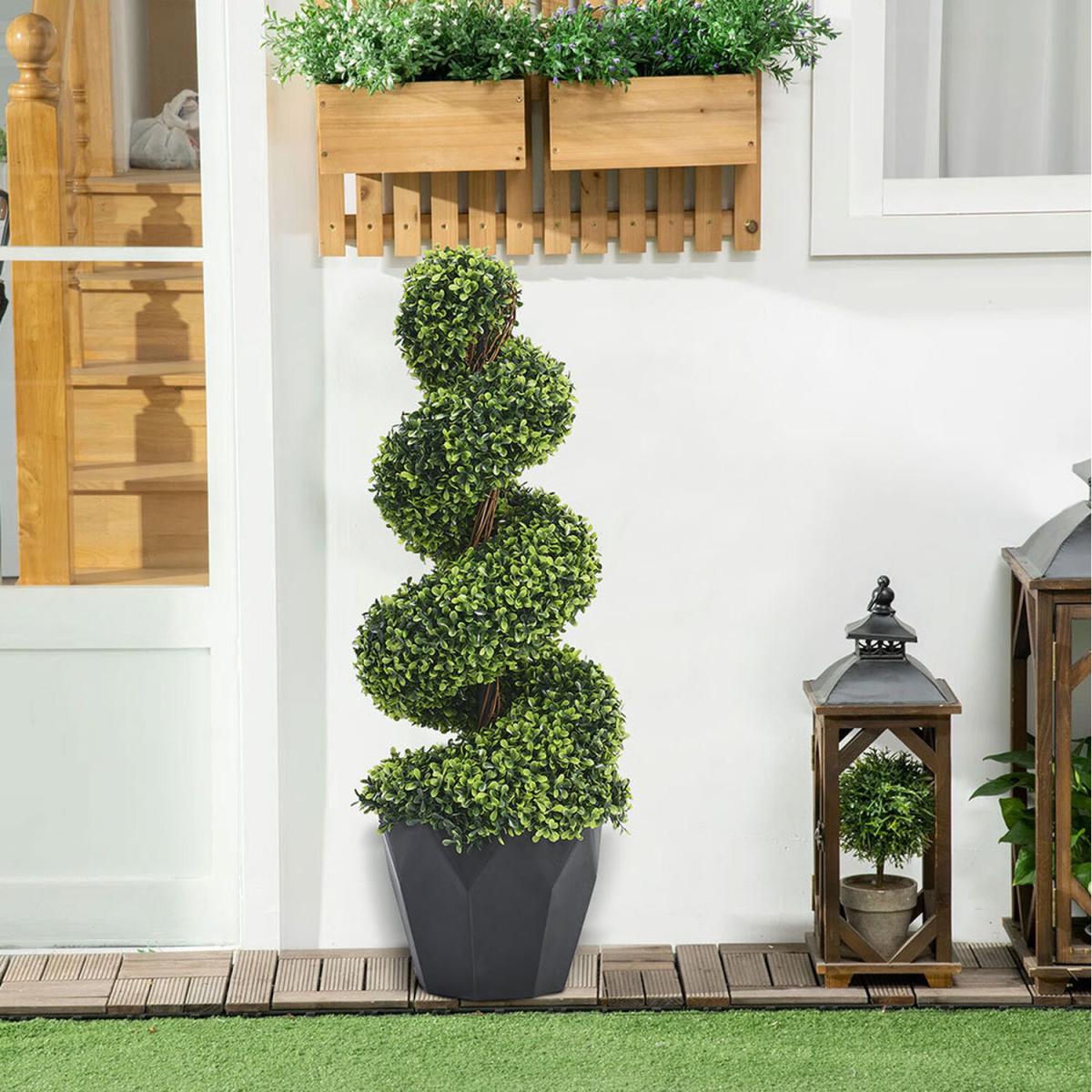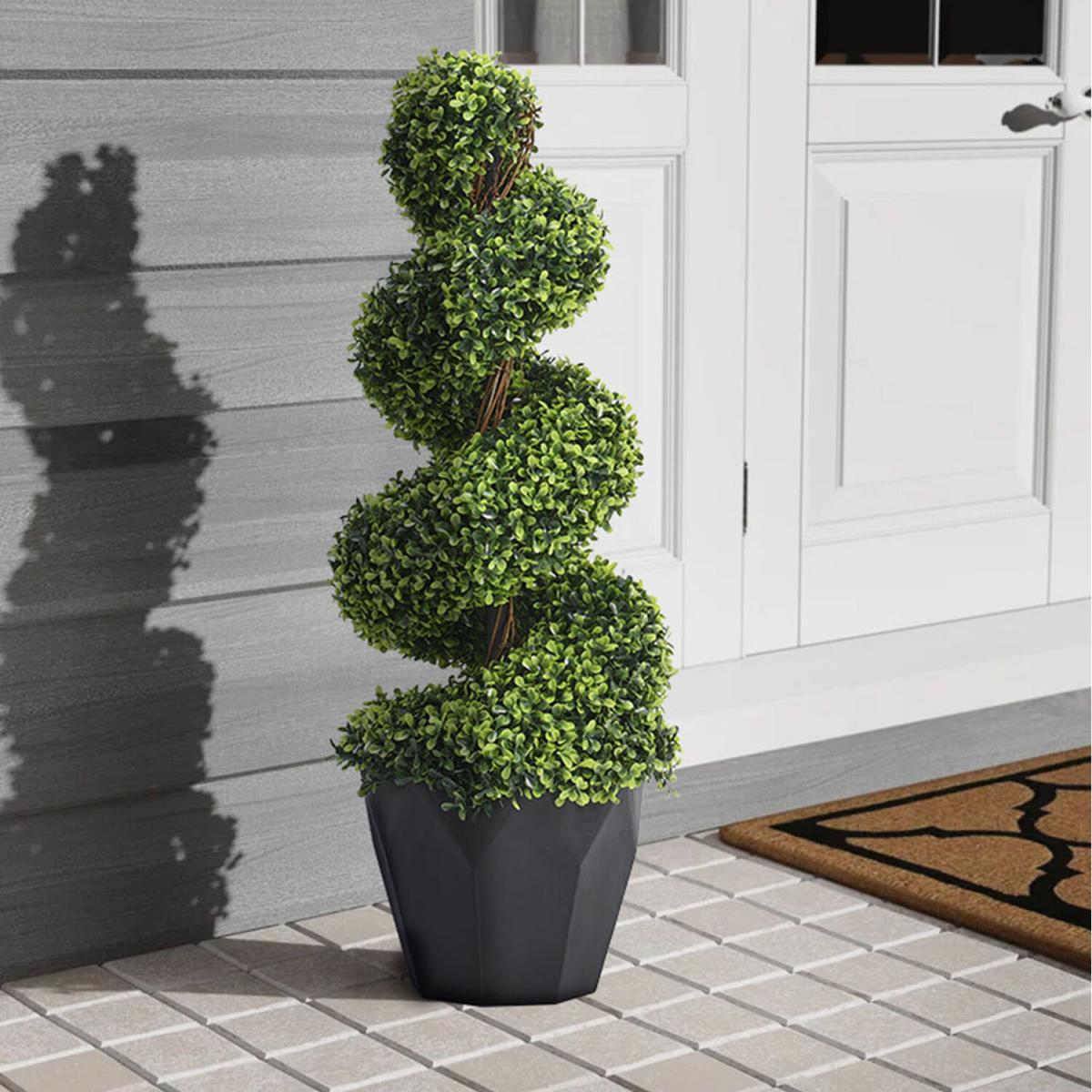 Enjoy a pop of green in your indoor or outdoor space with the Livingandhome fake spiral topiary tree. Made from high-quality plastic and other synthetic materials, this topiary tree is both durable and long-lasting. It has already spoken for itself with its one-of-a-kind spiral profile, it is destined to be a centerpiece and capture everyone's attention. The tree is in a classic-looking pot, which makes it ready for display after unpacking.