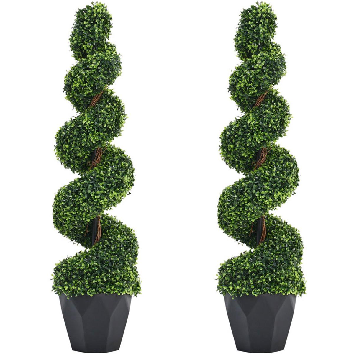 2 Pack Artificial Topiary Spiral Boxwood Tree Fake Plant - Green