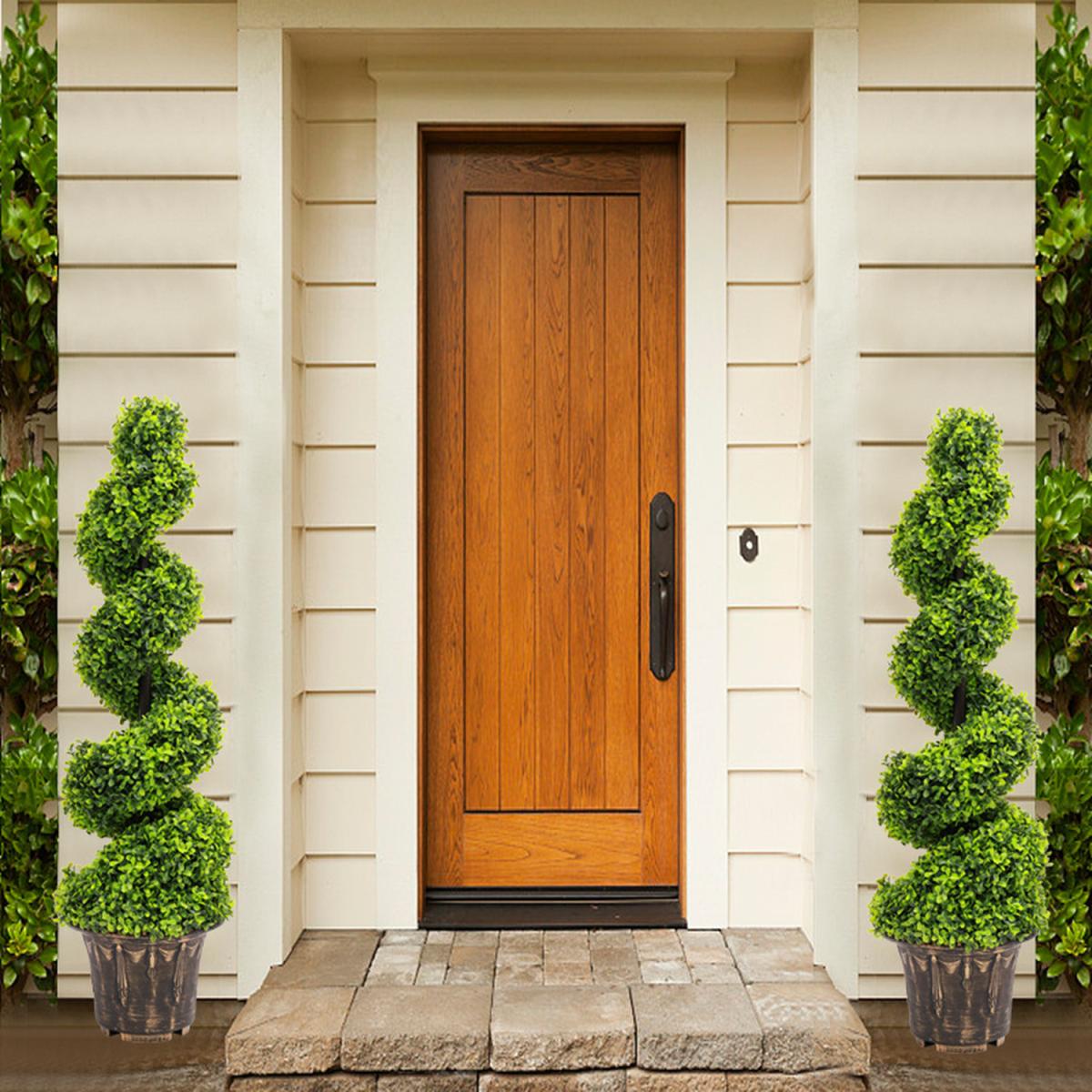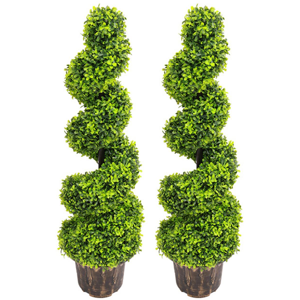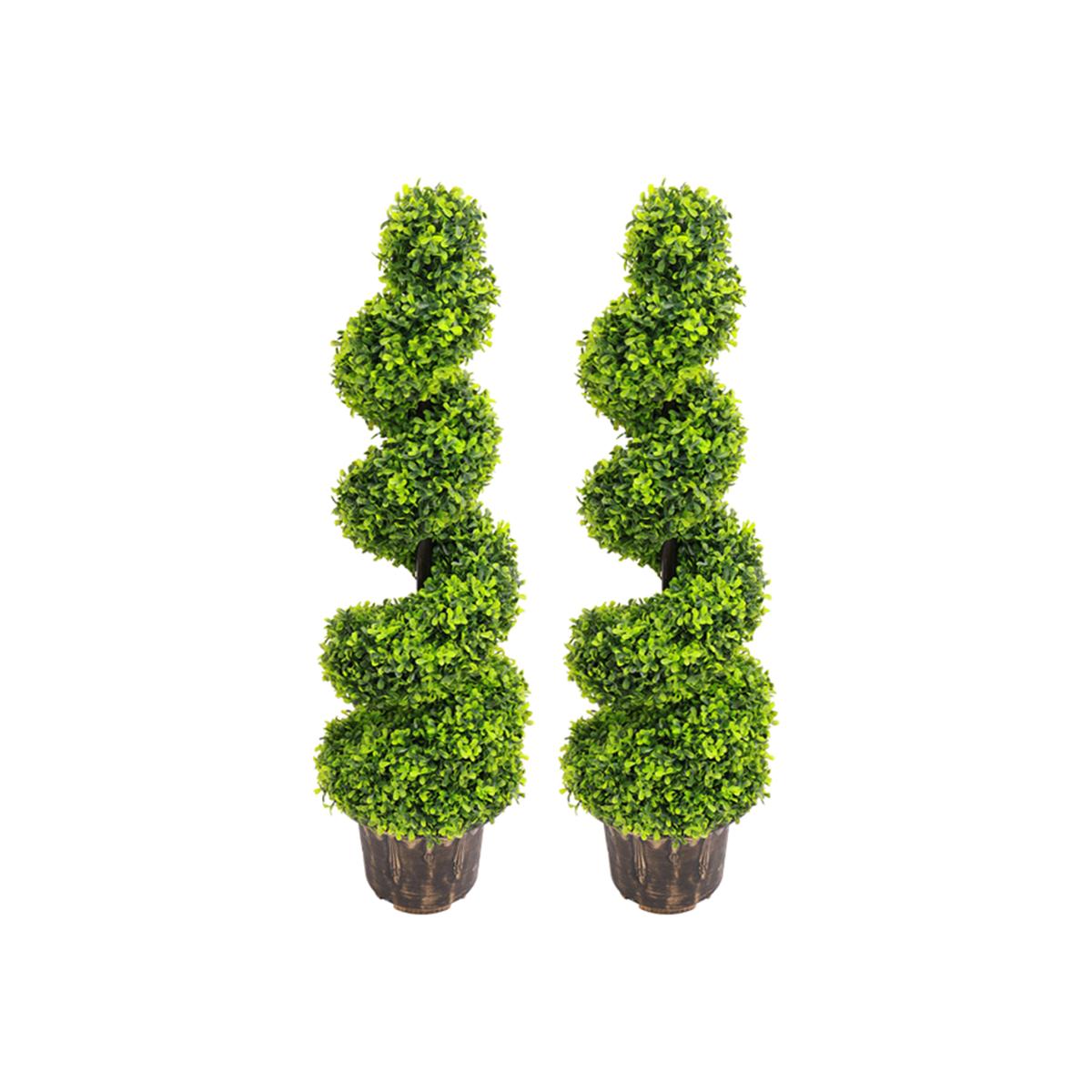 2 Pack Artificial Topiary Spiral Boxwood Tree Fake Plant - Green