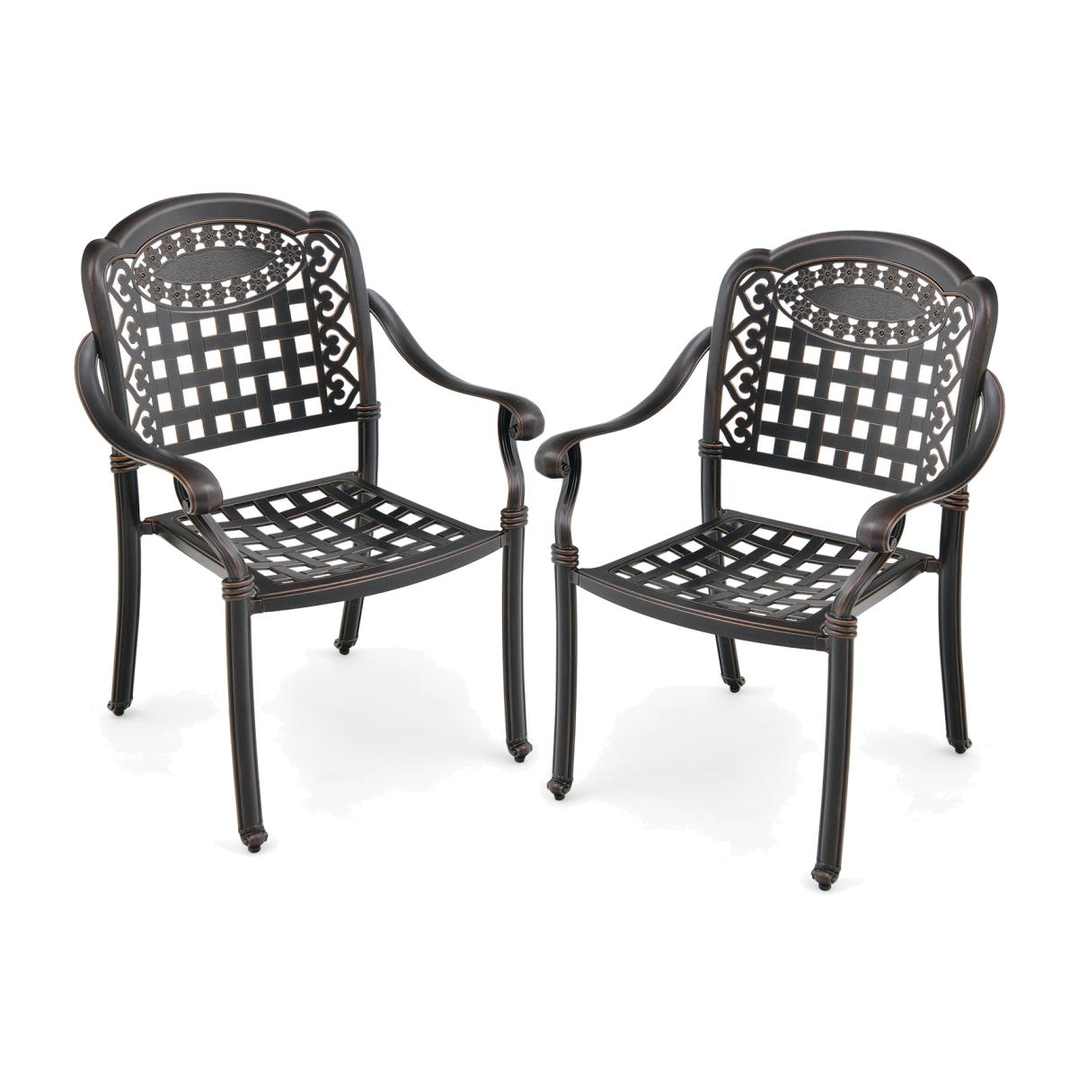 2 Pack Cast Aluminum Patio Garden Chairs - Bronze