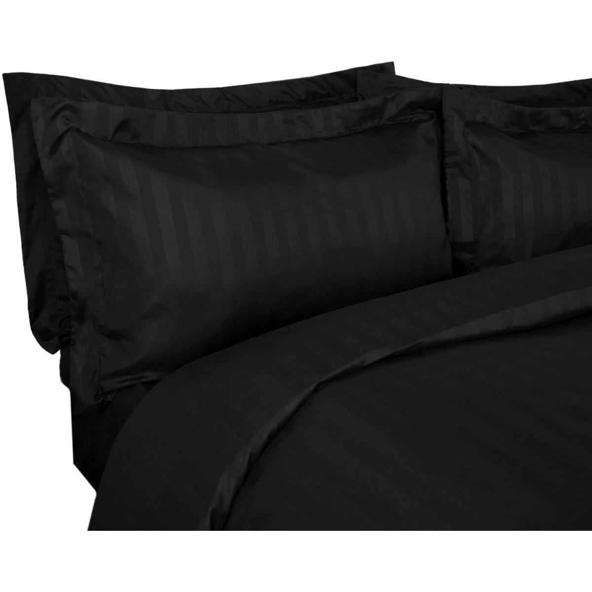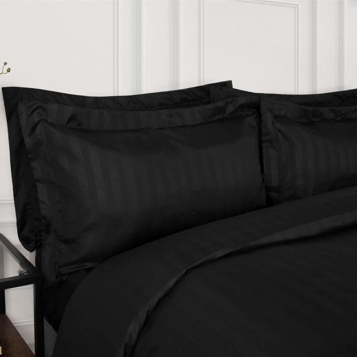 2 Pack Satin Stripe Oxford Pair Hotel Luxury Pillowcases - Black
