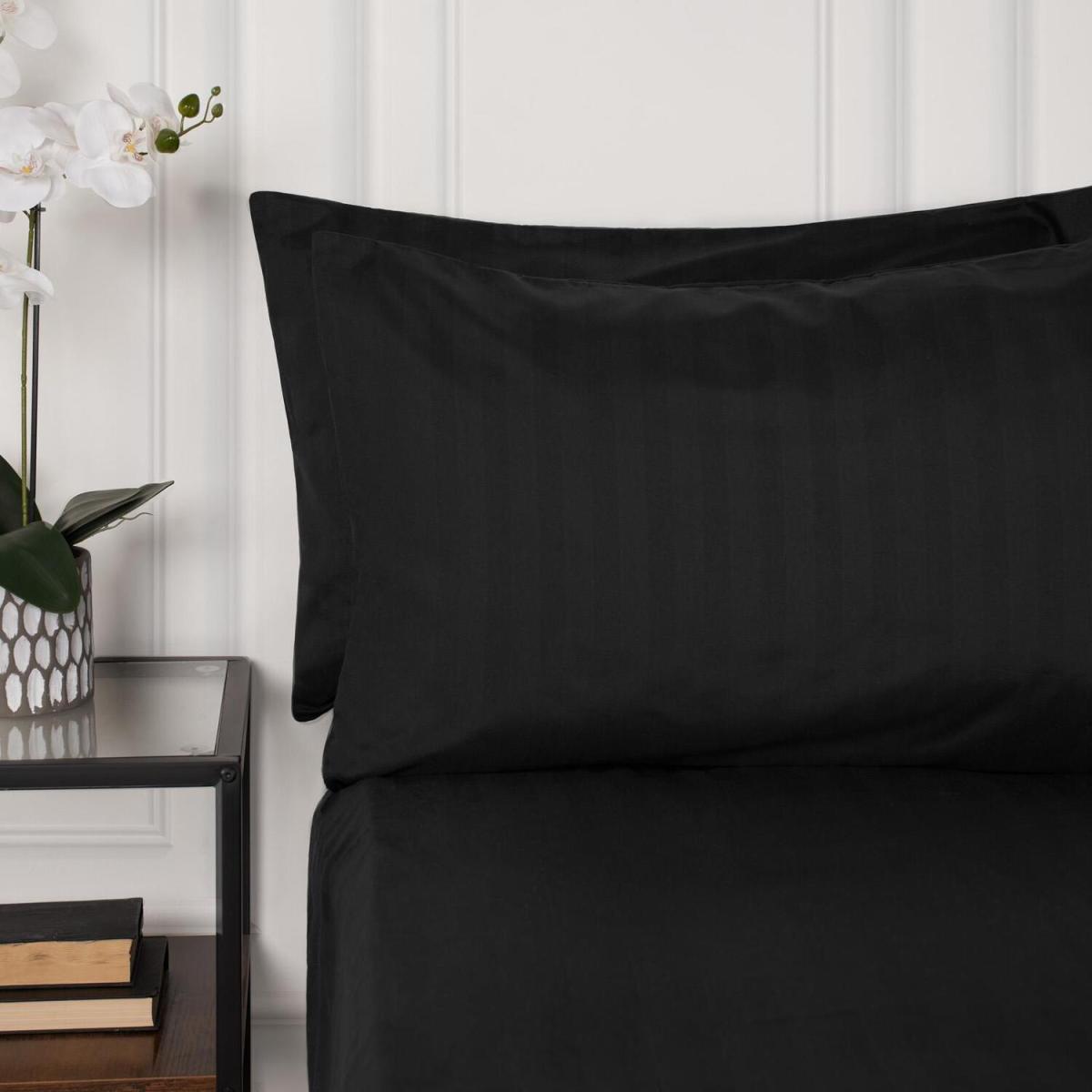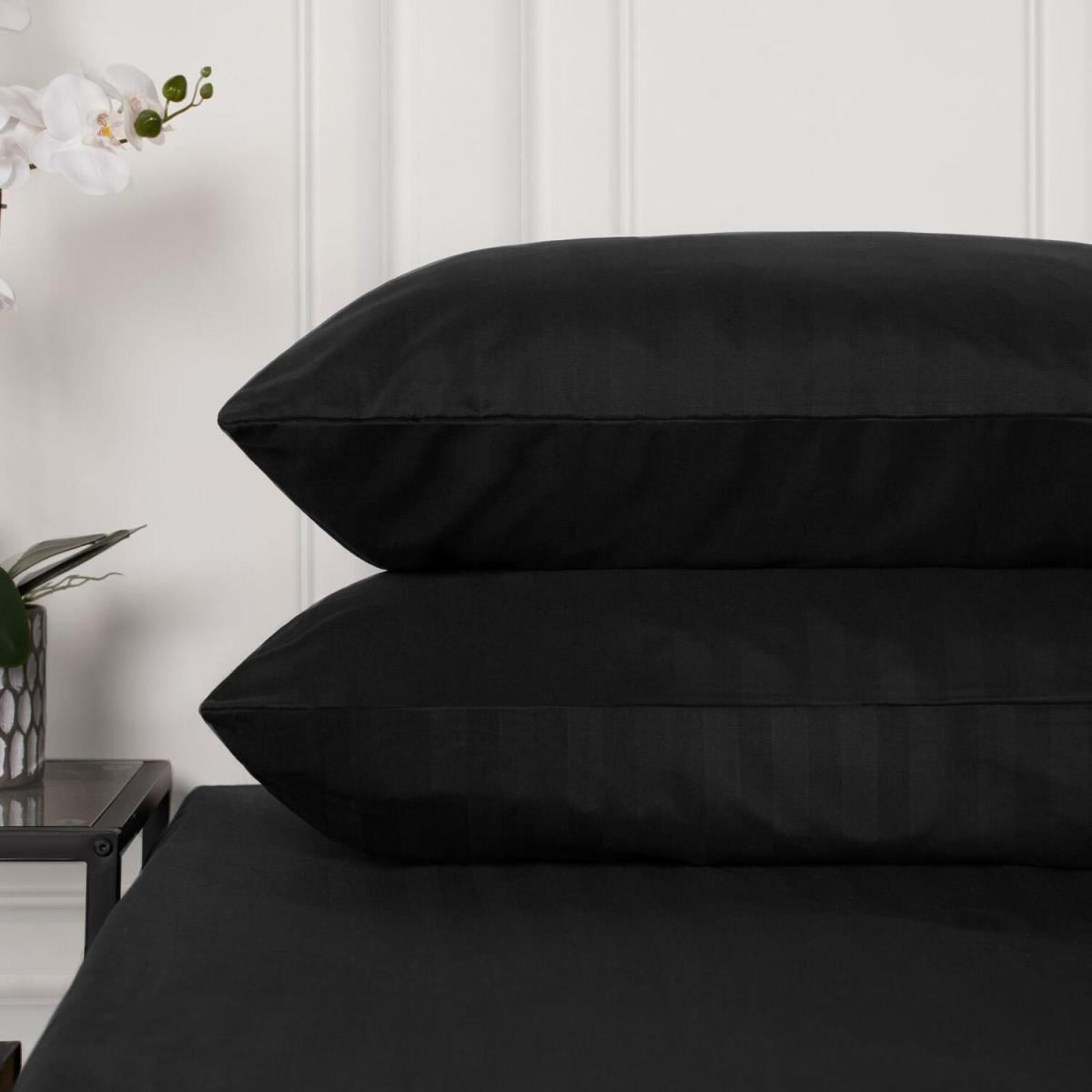2 Pack Satin Stripe Pillowcases Housewife Pair Hotel Luxury - Black