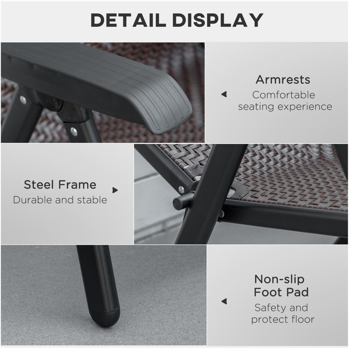 These two folding plastic rattan chairs from Outsunny are perfect for your outdoor space. The chair frames are made from steel for strength, wrapped with plastic rattan wicker. Comfortable seating for while eating or relaxing. The chairs are foldable for easy storage and transport, Will complement any furniture in your room, perfect for outdoors, such as the garden, patio and more.