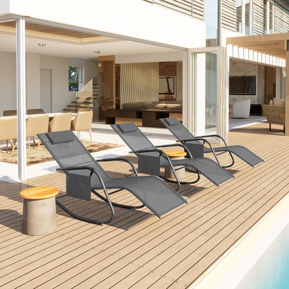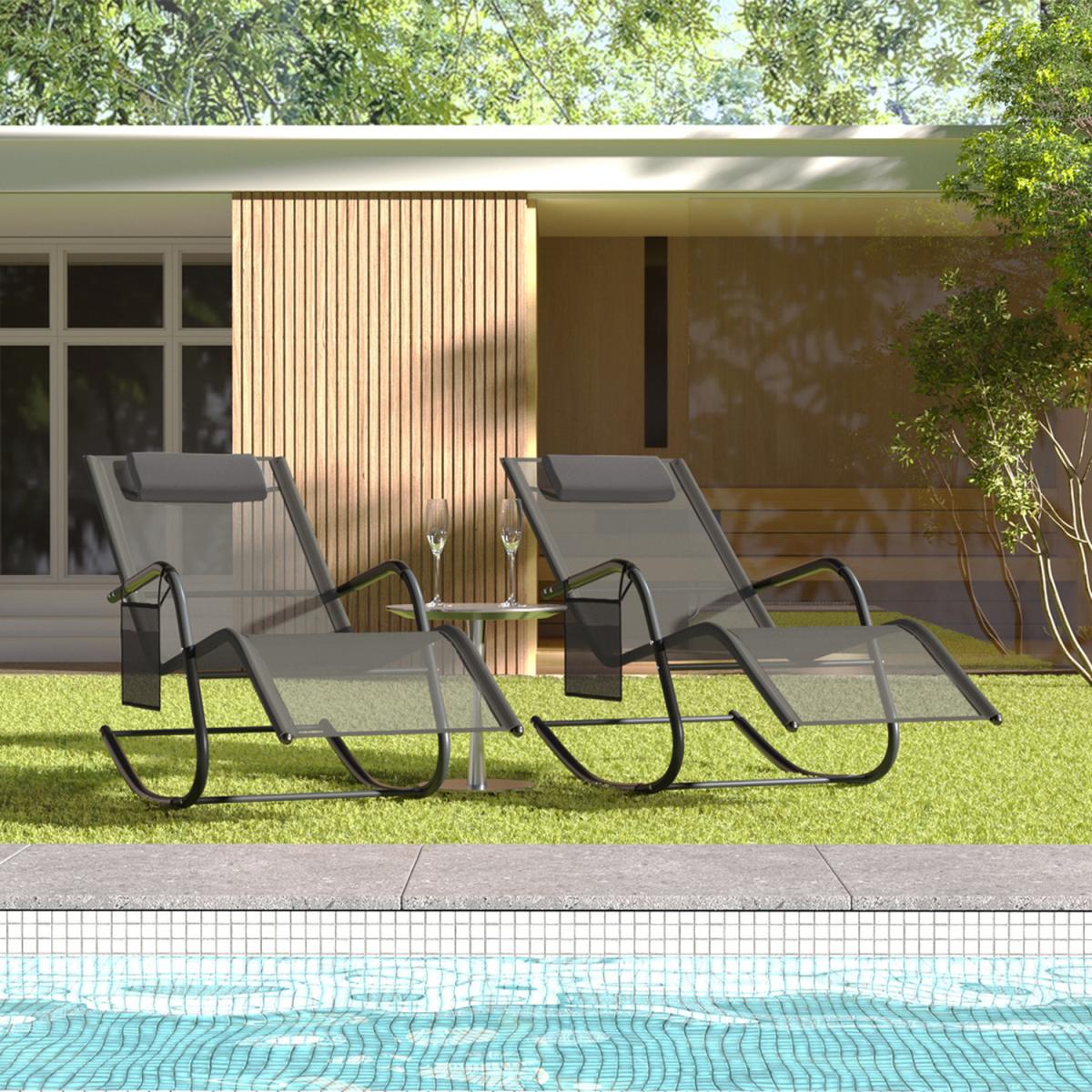 I love these garden loungers for their sleek, contemporary look and versatile design. The grey fabric is neutral and modern, making them adaptable to a range of outdoor styles-from minimalist to rustic. Their rocking feature adds a relaxing element, perfect for unwinding by the pool or in a sunny corner. Practical styling tips include pairing them with colourful outdoor cushions or throws for a pop of colour, and positioning them under shade or near greenery to enhance their inviting vibe. These chairs work well in contemporary, Scandinavian-inspired gardens, or even in a more pared-back, pared-back terrace setting, providing comfort and style effortlessly.