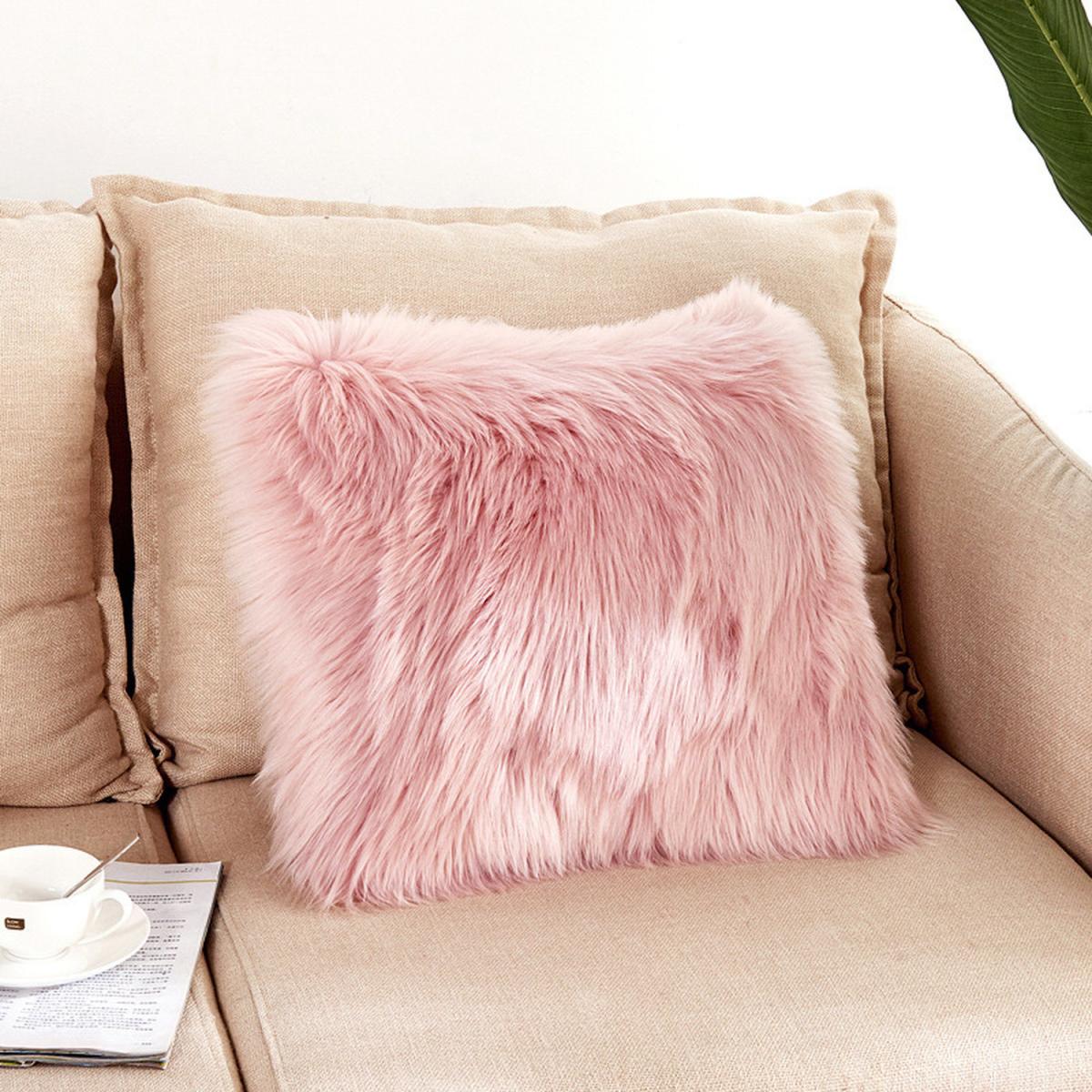 2 PCS Soft Luxury Faux Fur Plush Double Sided Pillow Case - Pink / 50*50