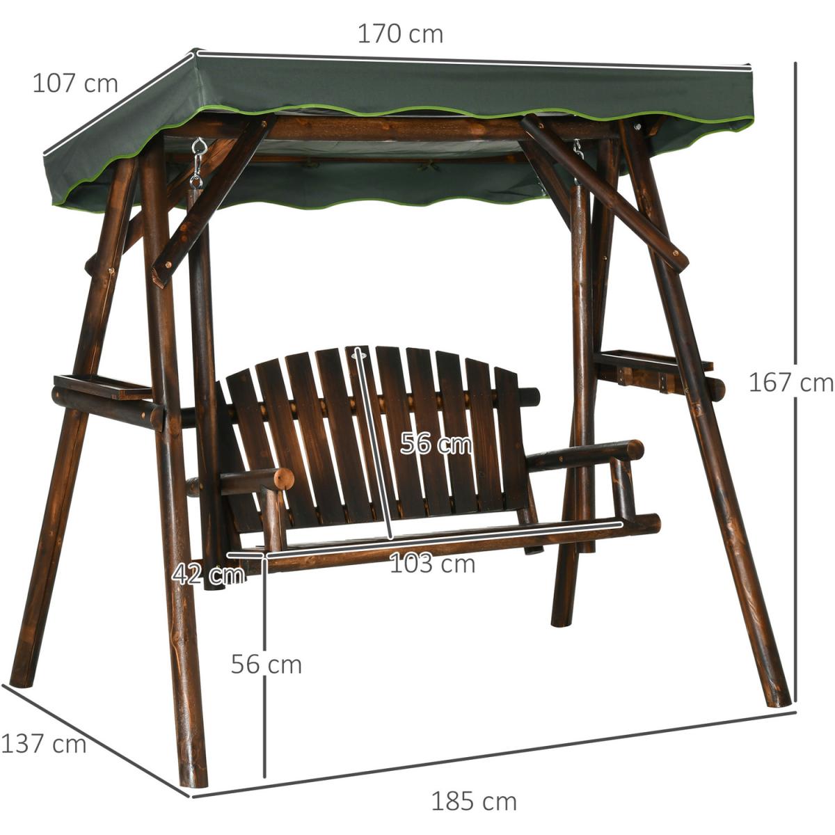Enjoy the outdoors, more than ever before - do it with this Outsunny garden swing chair. Made from fir wood, the structure is strong, with 'A' shaped legs for it to keep balanced. The two-seater sized seat gives room to relax with company if you want - the high back and armrests give you support. On the top, there's an adjustable canopy which shields against direct sunlight and light rain etc. A must-have for any garden-sun lover.