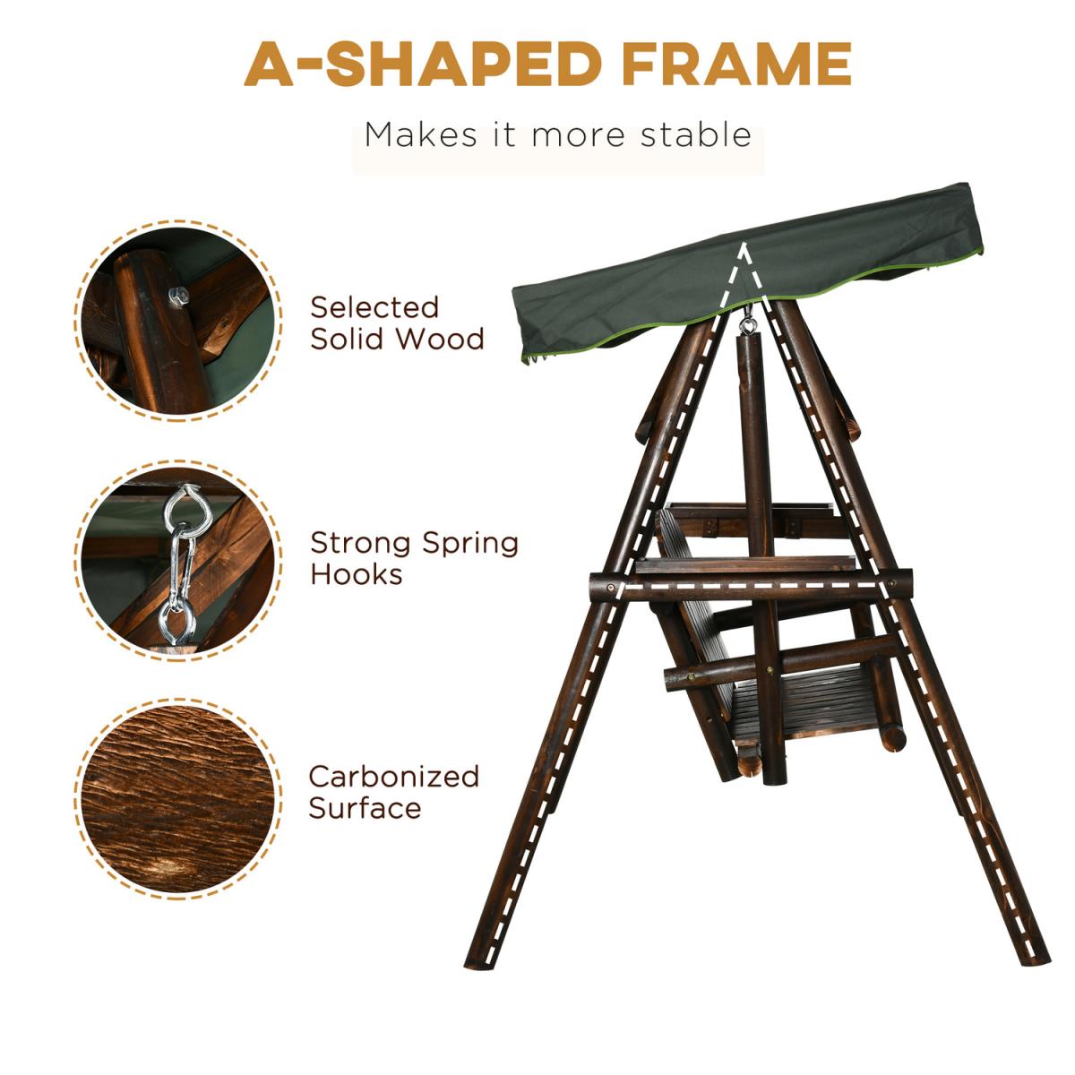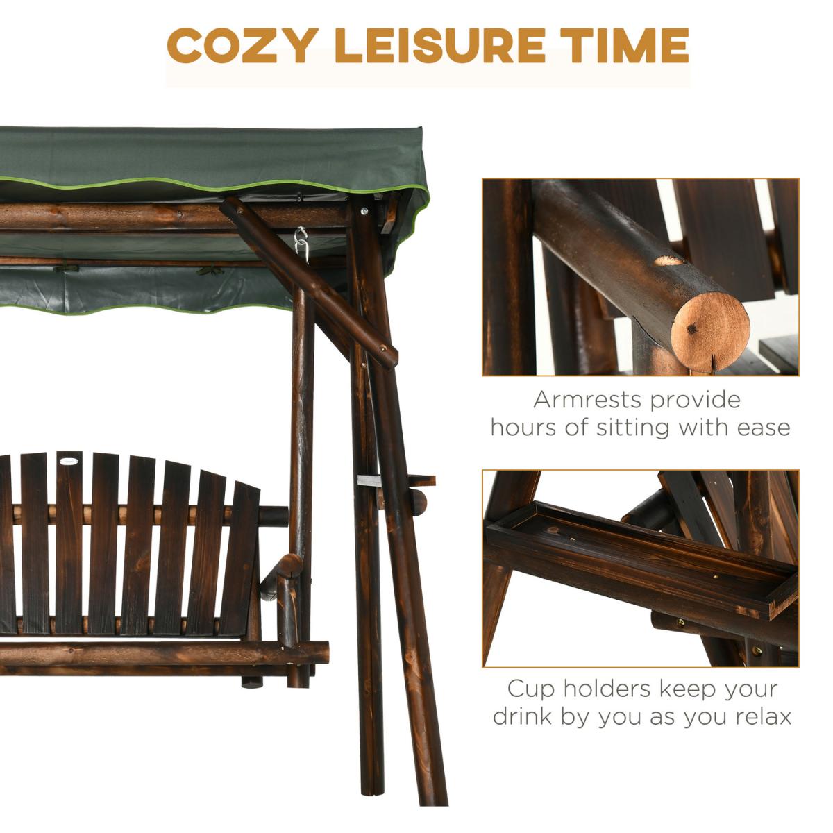 2-Person Garden Swing Chair Outdoor Hanging Wooden Bench - Carbonized