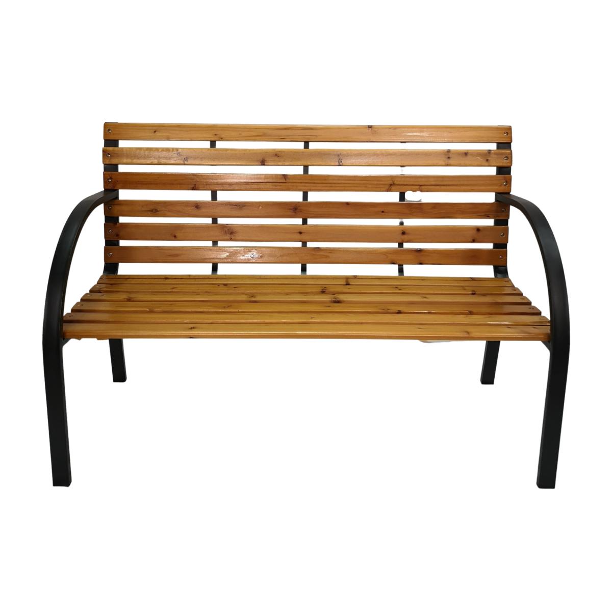 Relax in your garden in style this year with this park-style bench. Suitable for the patio, garden or balcony. This 2 seater bench is made of quality fir wood and constructed with a powder-coated metal Black modern frame ensuring durability and stability for years to come. The slatted design works well for any setting making it ideal for anywhere in your garden to enjoy the outdoors. The bench's comfortability sits 2 people with its spacious seat area and the backrest provides plenty of support giving you a relaxing, comfortable sitting posture. Self-assembly required.
