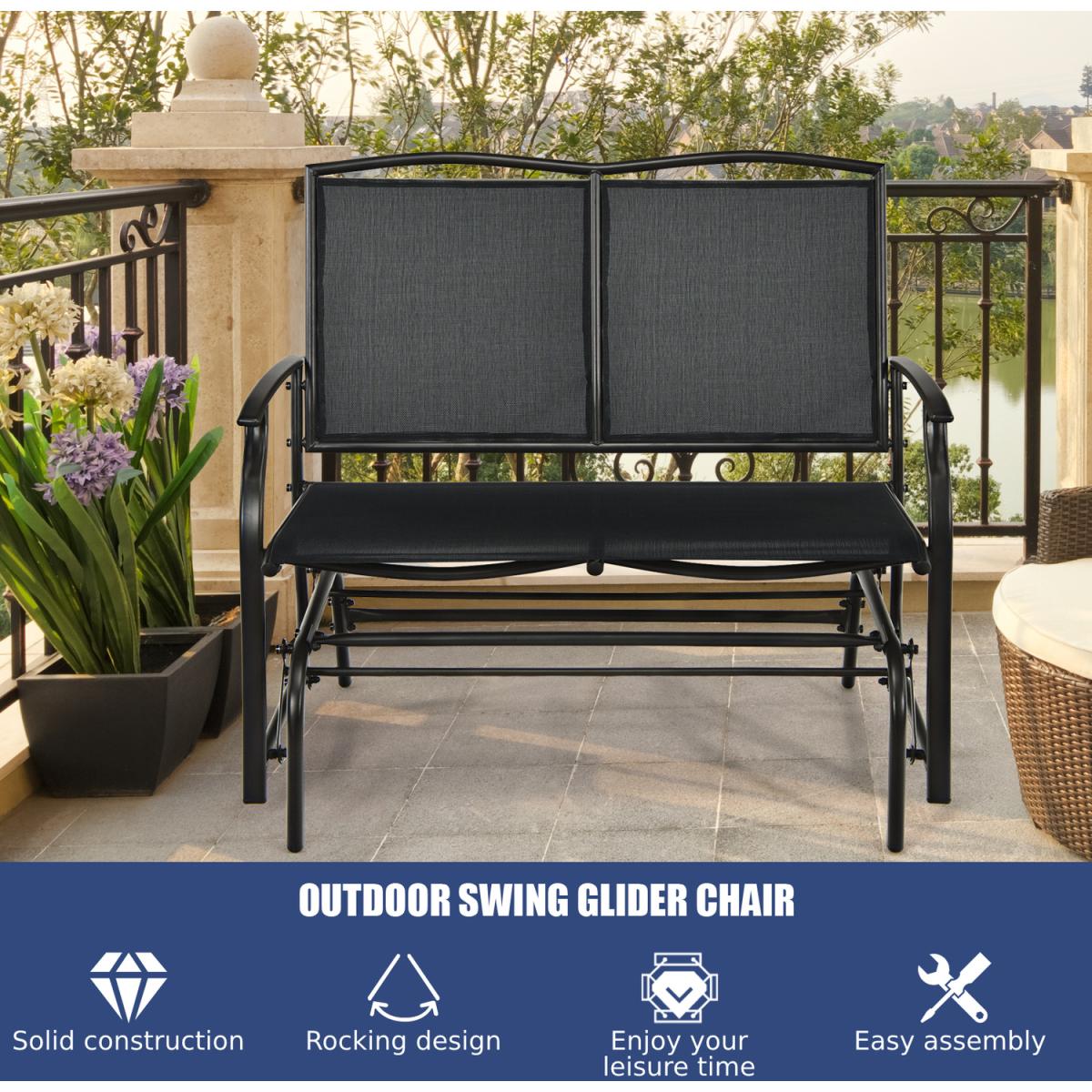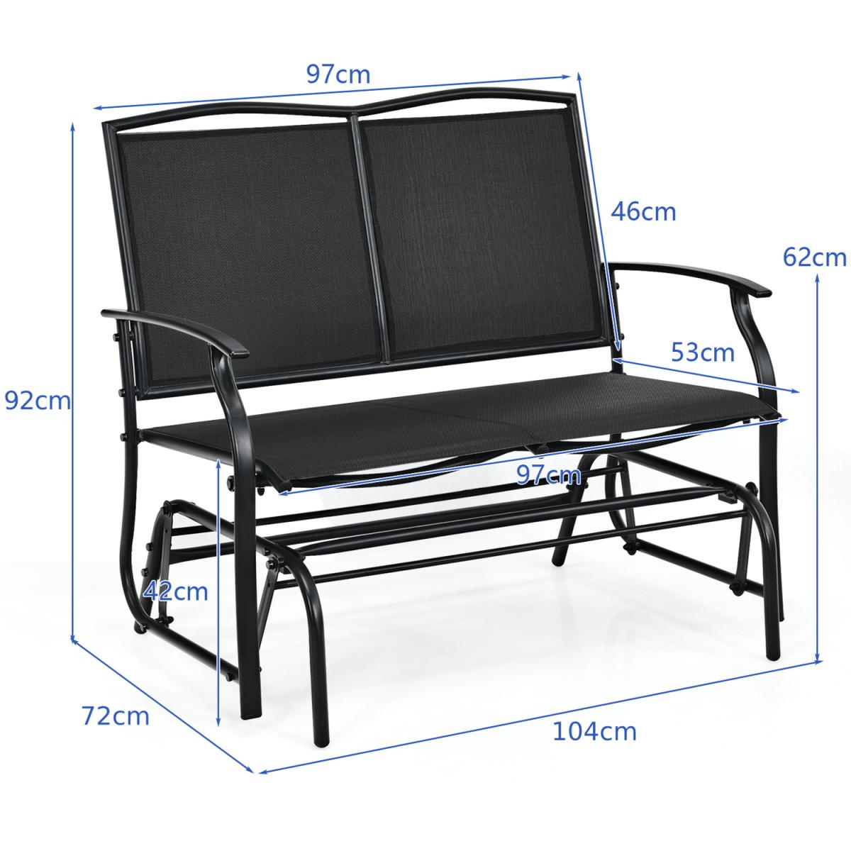 Different from traditional benches, our patio glider bench will not only offer a perfect relaxing place to you, but also provide you with an ultra-comfortable rocking experience. Constructed of heavy-duty steel frame, the glider bench is super sturdy and durable to use. And you can sit on it comfortably with best friend due to the spacious sitting area and ergonomic design. Moreover, the breathable seat fabric effectively accelerates air ventilation and can be dried up quickly. With this glider bench, you can relax, take a sun bath or have a nap in any places you want, such as garden, backyard and poolside.