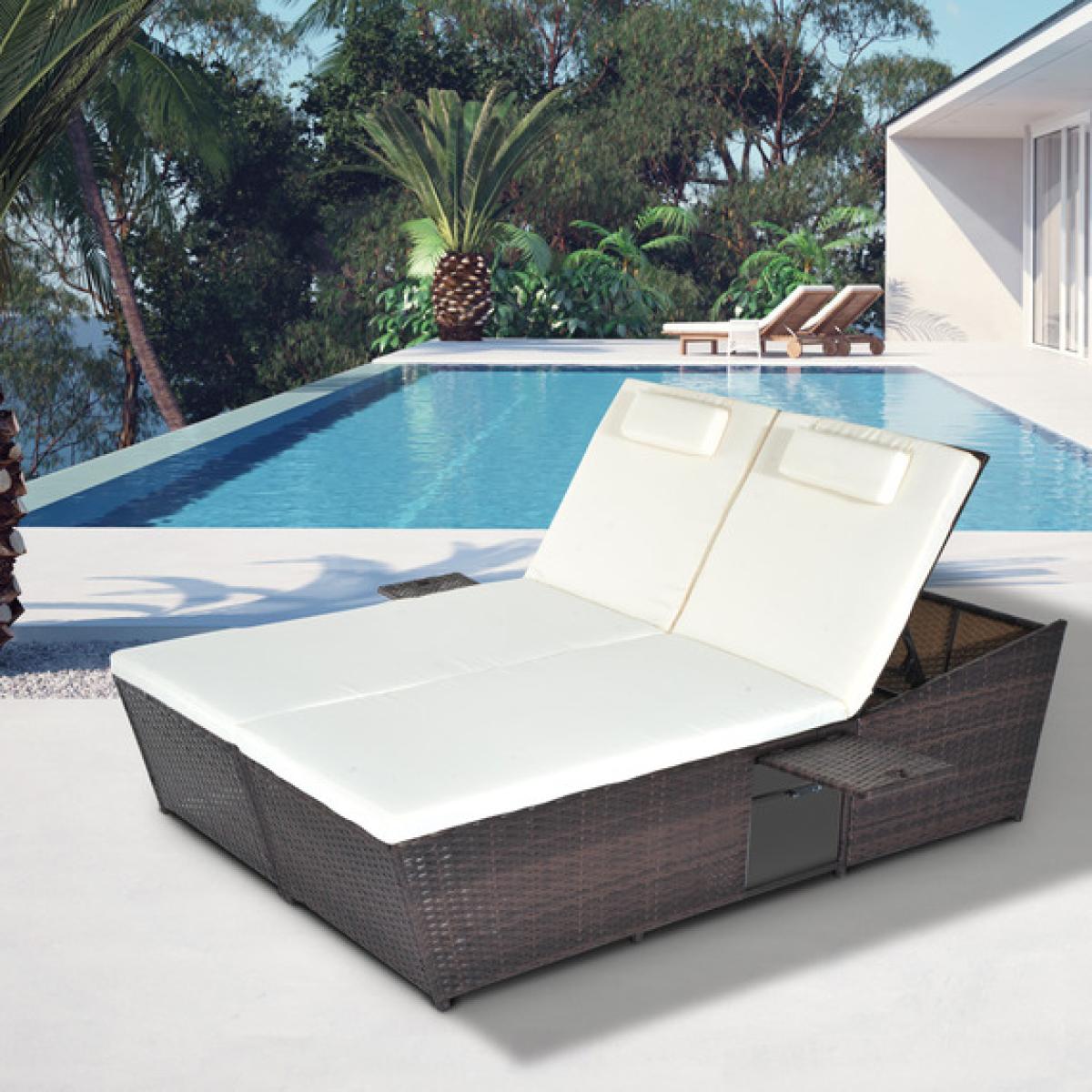 Outsunny's 2 Person Rattan Daybed will surely be a perfect addition to your existing outdoor area. This daybed provides you with total relaxation all in the comfort of your home. Thick padded upholstery, two free pillows and the 5-level adjustable reclining backrest bring unprecedented comfort to your seating and lying experience. Constructed with solid metal frame and weather-resistant rattan material, it is in high strength and durability for years of use. It comes with a retractable small tray on both sides for extra convenience. Add charm and elegance to your gazebo, patio or poolside with this double chaise lounge!