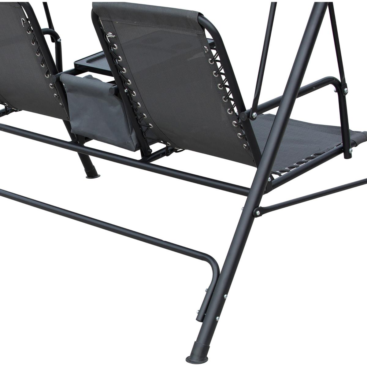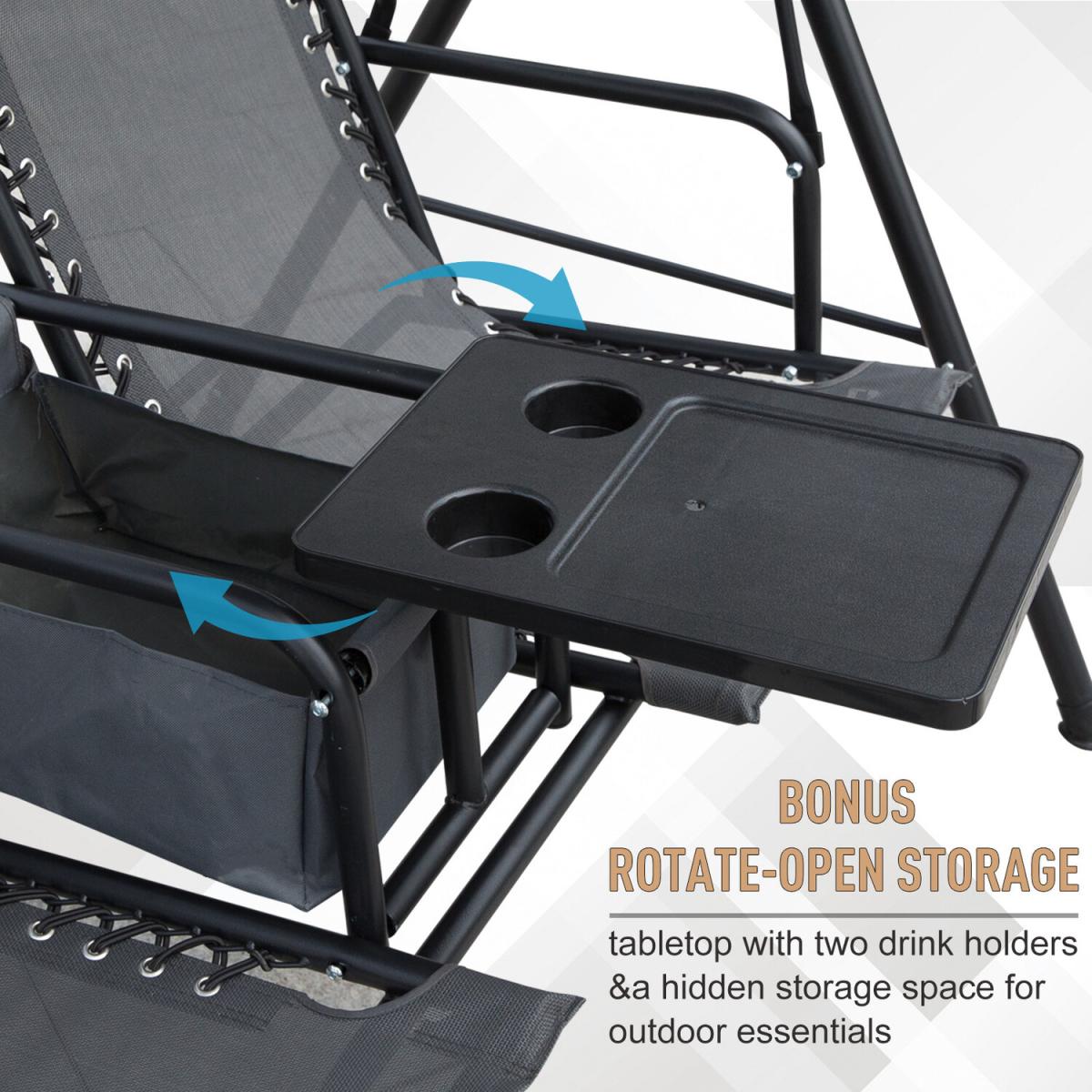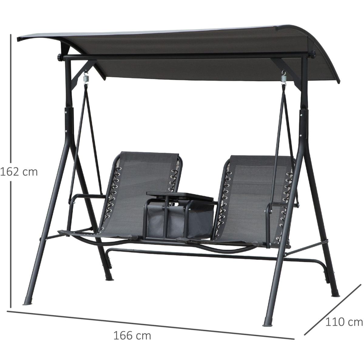 Whether you'll be swinging with a friend, or simply catching some time to yourself, this double seat swing chair is a must for anyone who loves relaxing in their garden. It is fitted with a double seat swing seat, with a middle storage table and lid with two drinks holders to keep anything you need conveniently close to you. An adjustable fabric canopy sits above, sheltering you from UV rays, sunlight and light rain and wind. An enticing focal point for your garden which is ideal for the season ahead.