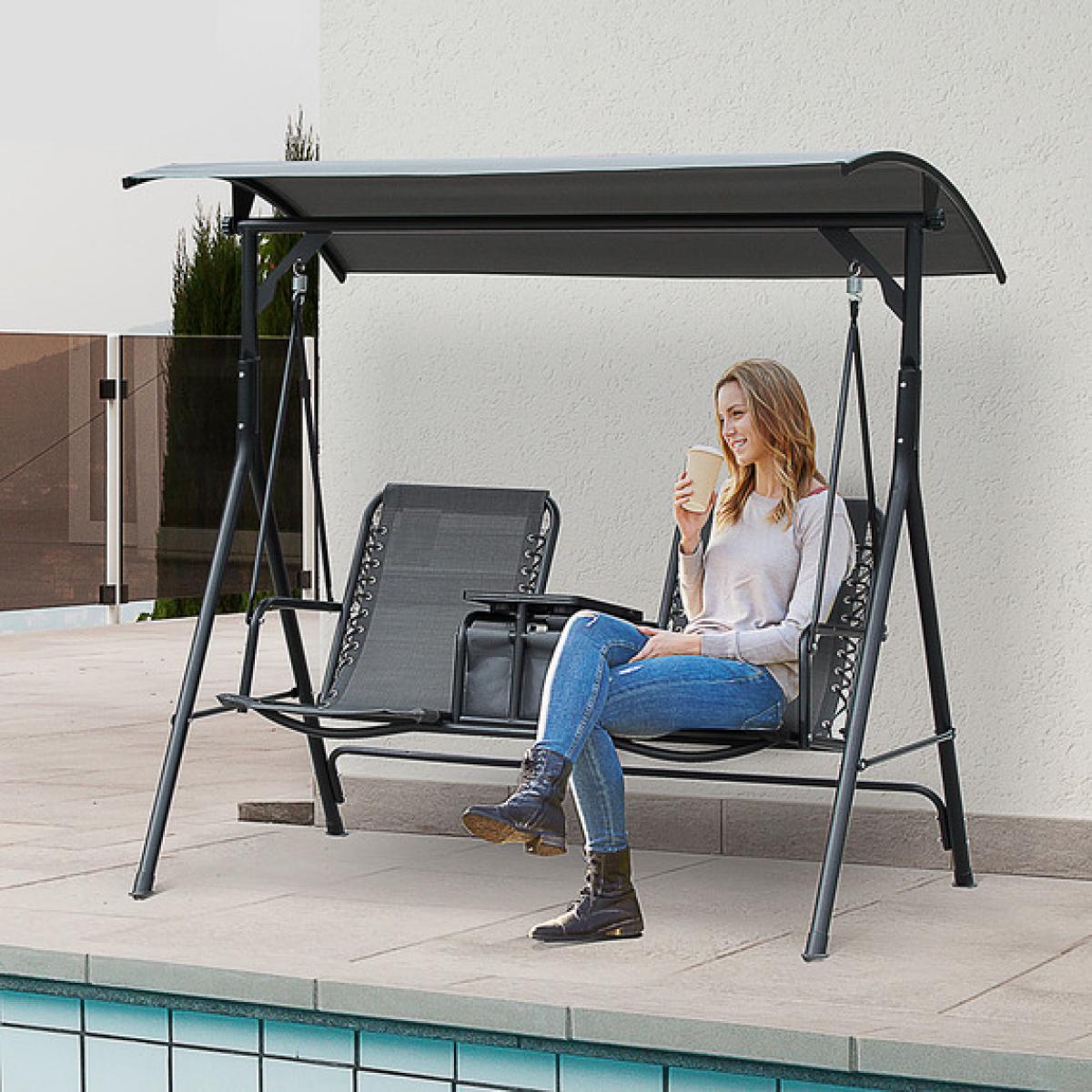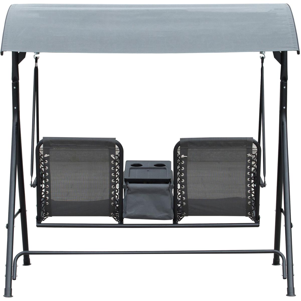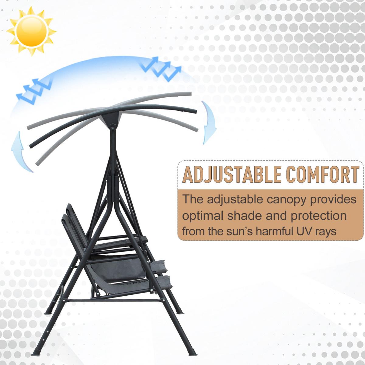 Whether you'll be swinging with a friend, or simply catching some time to yourself, this double seat swing chair is a must for anyone who loves relaxing in their garden. It is fitted with a double seat swing seat, with a middle storage table and lid with two drinks holders to keep anything you need conveniently close to you. An adjustable fabric canopy sits above, sheltering you from UV rays, sunlight and light rain and wind. An enticing focal point for your garden which is ideal for the season ahead.