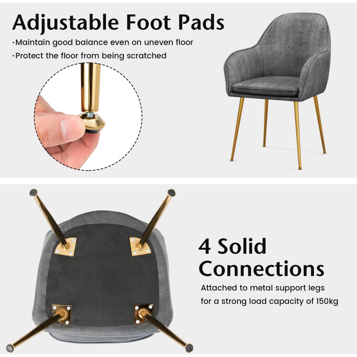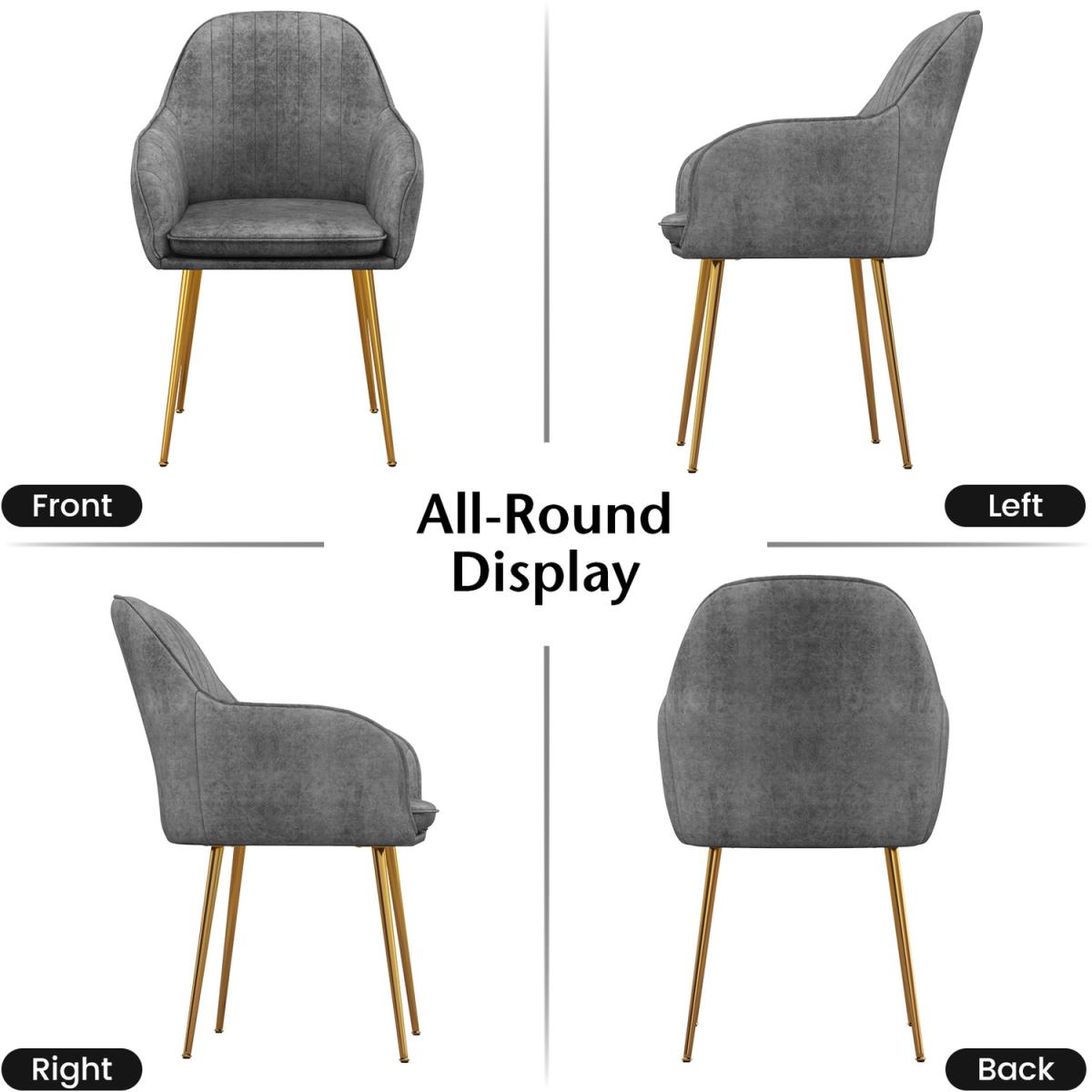 The dining chair set of 2 is a comfy addition to improve your life quality. Each kitchen chair is upholstered by superior leathaire, which is breathable and wear resistant. Plus, its weak alkalinity is very friendly to your skin. Also, each leisure chair has a removable cushion padded with high-density sponge. Supported by metal legs, using stability is well ensured, while adjustable foot pads are helpful to maintain good balance on the uneven floor. During a long-time sitting, ergonomic backrests and armrests will offer ample support for an enjoyable sitting experience. Finally, the installation is very simple.