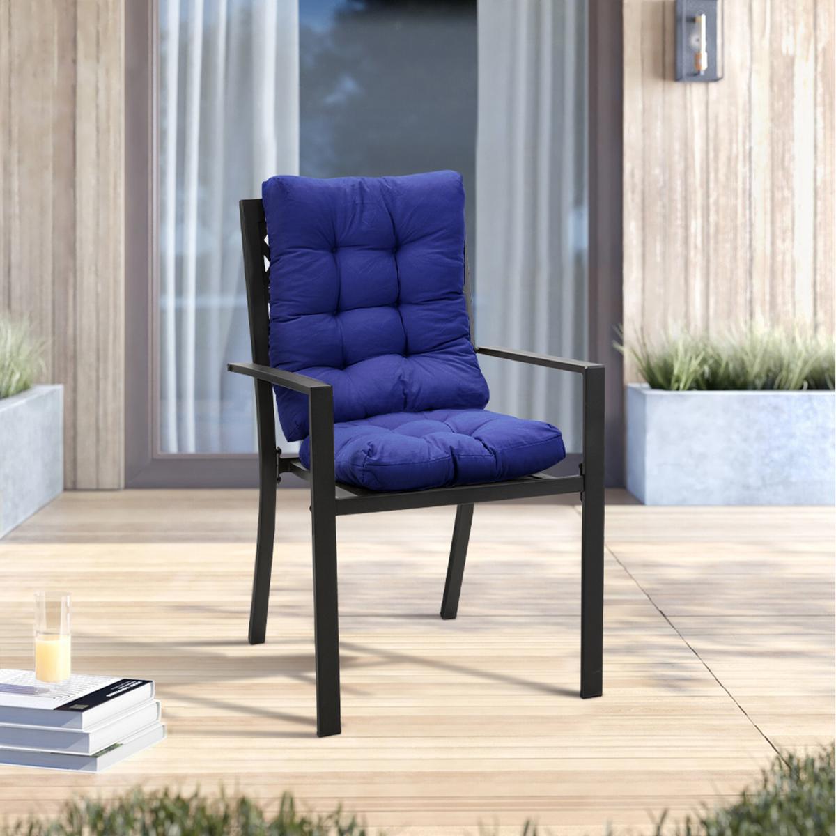 This two-piece cushion set, made from breathable and comfortable fabric, is ideal for outdoor use with its waterproof and sunproof features. Designed for versatility, the cushions can be used together or separately to fit various chair styles. The soft filling offers lasting support without losing shape, ensuring all-day comfort. Available in simple, pattern-free colors, they effortlessly complement most furniture styles. 2-Piece Outdoor Tufted Seat Cushion Set - Navy Blue
