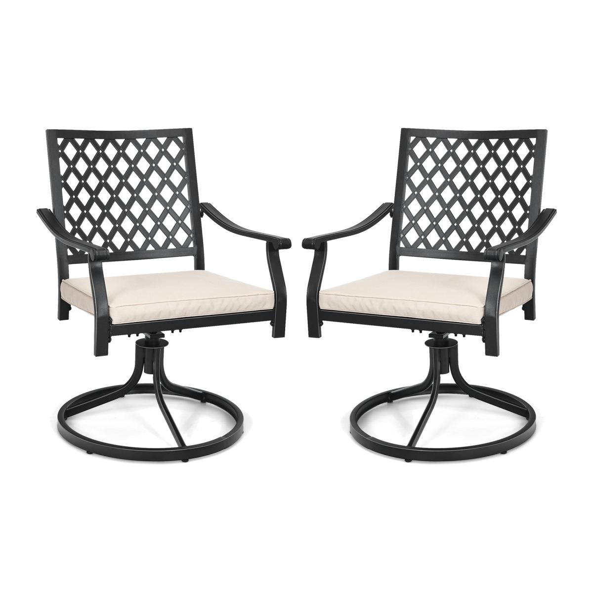The chair's weather-resistant qualities and wide application make it equally suitable for your balcony or by the poolside, ensuring lasting enjoyment in any outdoor setting. Boasting a robust metal frame with a capacity to support up to 140 kg, it's not just about style but also about strength. Admire the chair's elegant pattern backrest and smooth armrests that blend seamlessly with any decor, while the practical fasteners keep your cushion securely in place. 2 Piece Patio Bistro Dining Chair Set - Black