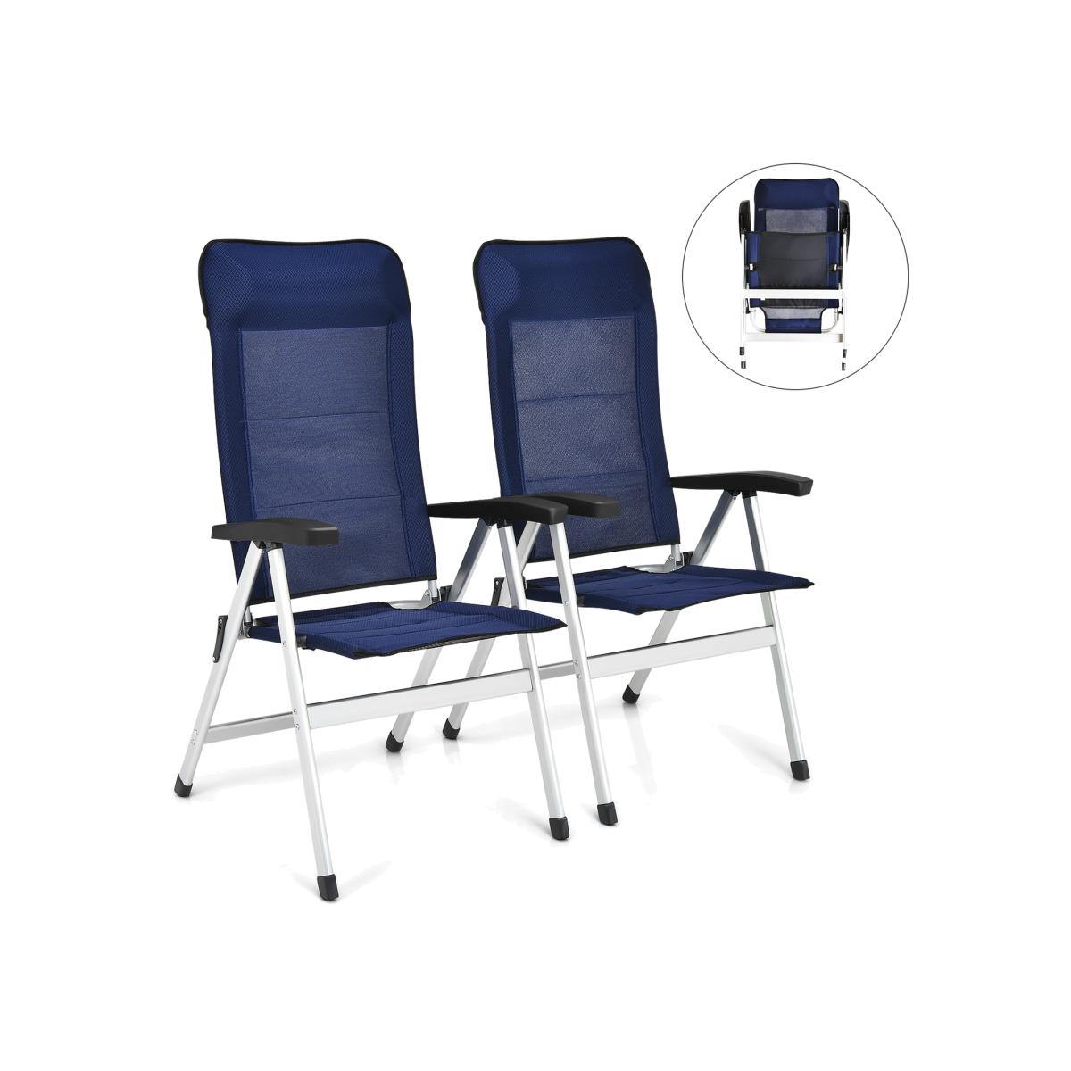 Our 2-piece patio folding chairs are the perfect solution for outdoor travel and rest. The adjustable 7-level angles can be adjusted freely by the armrest according to different activities. The polyester and nylon are breathable and dry quickly, ensuring a comfortable and cool relaxing experience suitable for outdoor use. The padded headrest allows you to have a sweet dream while resting. The high backrest and wide armrests allow you to enjoy maximum comfort. 2-Piece Patio Folding Chairs - Blue
