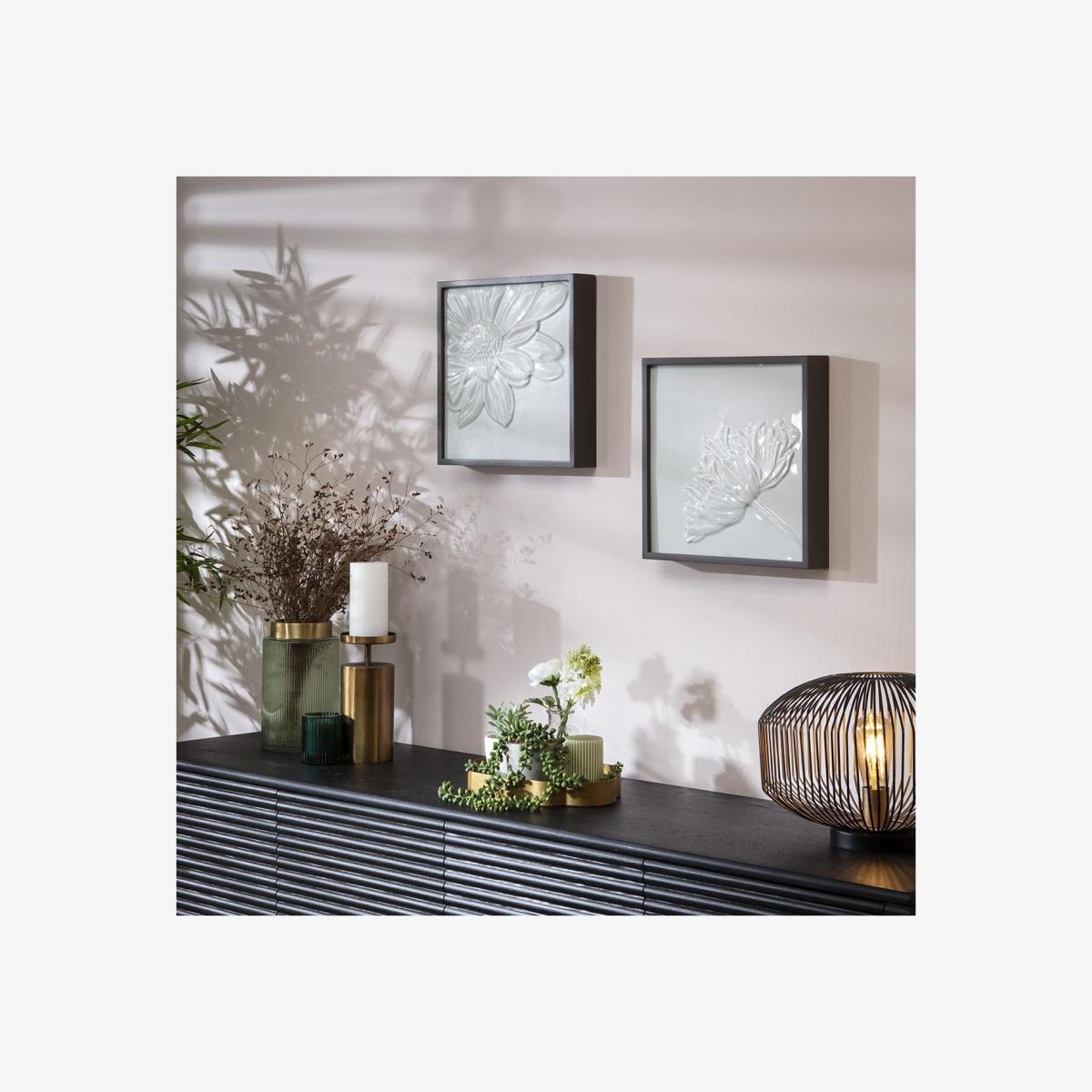 Elevate your space with this bold, modern wall art set, featuring a striking 3D porcelain flower designs in white, framed in black hardwood. At 36cm square each, the two tactile wall panels add depth and style. Perfect as unique wall art for any modern interior. Quatropi modern home accessories offer stylish room decorations with contemporary designs and premium finishes. Crafted for durability, our home accessories elevate any modern home. Make a lasting impression and enhance your space with beautiful home decorations and accessories for the home. These modern pieces are handcrafted in small batches by skilled artists, ensuring each one is perfect down to the smallest detail. With meticulous attention to quality, they add a sophisticated touch to any space, perfect for those seeking artistry and exclusivity in every design. Got a question about this piece? Contact our team who are on-hand and ready to assist you. Use the live chat function for quick and easy support. W72cm D6cm H36cm Set of 2 Panels Wall fixings attached