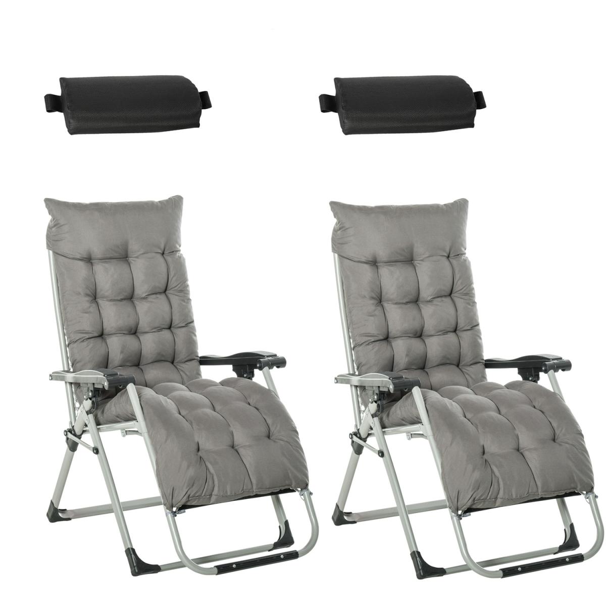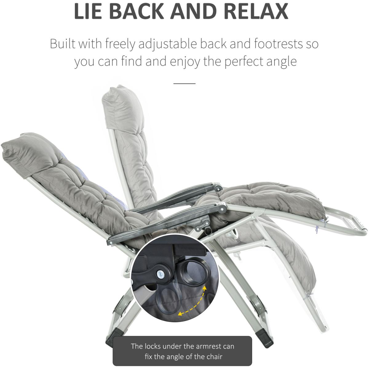 2 Piece Reclining Zero Gravity Sun Lounger - Grey