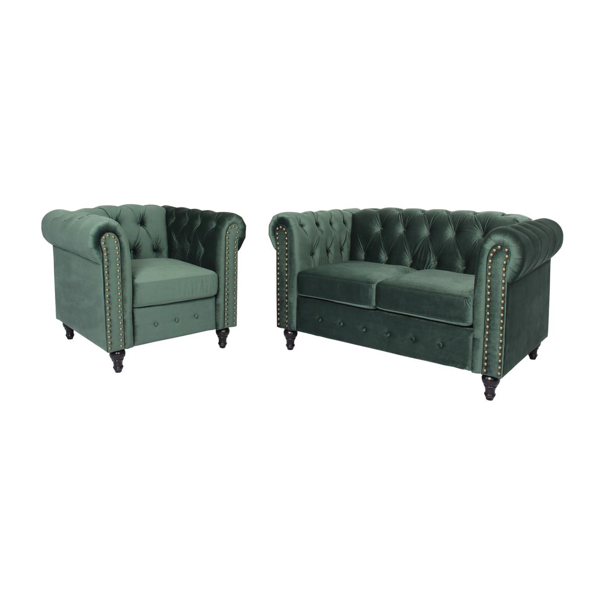 2 Piece Upholstered Armchair with Nailhead Trim - Green