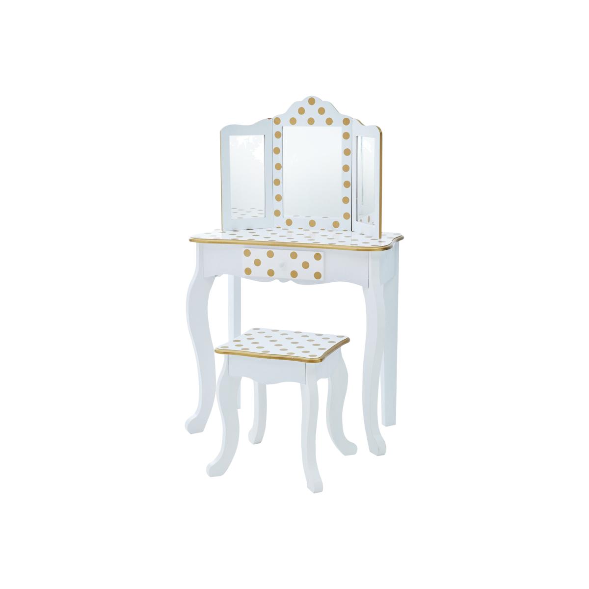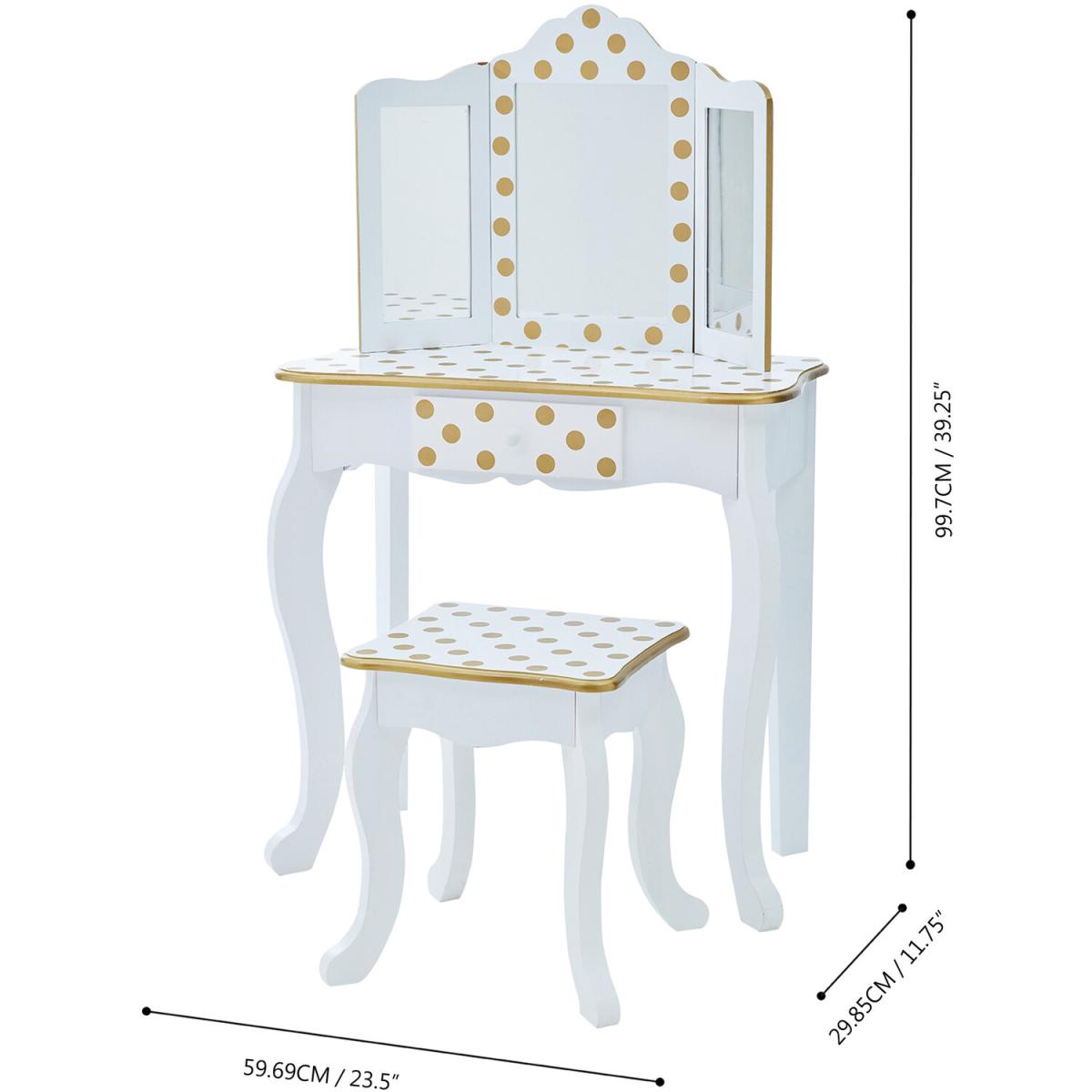 2 Piece Wooden Kids Vanity Set - White / White and Gold Fashion Polka Dot