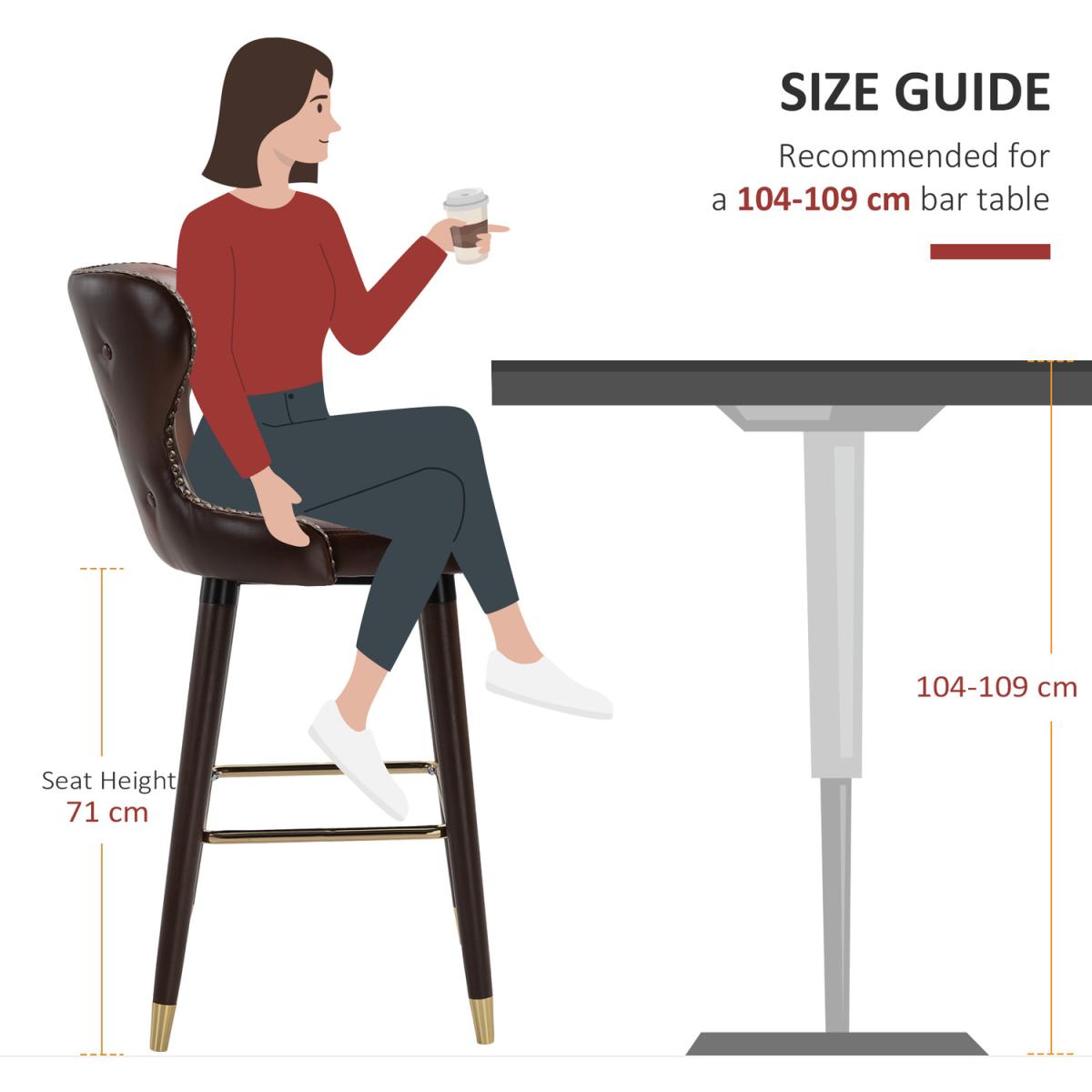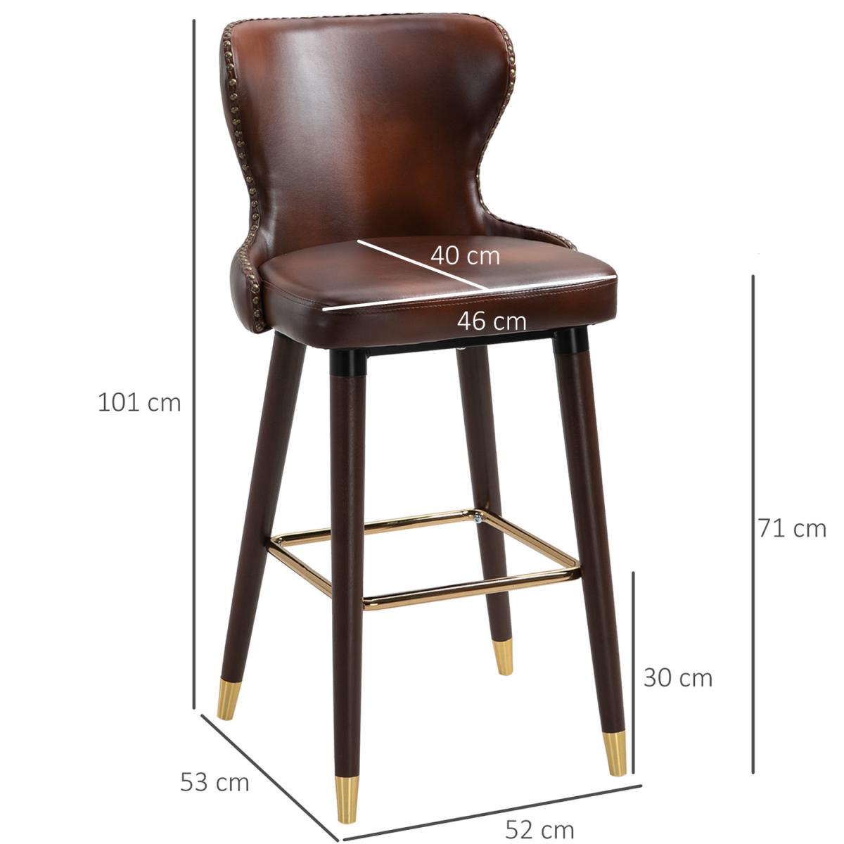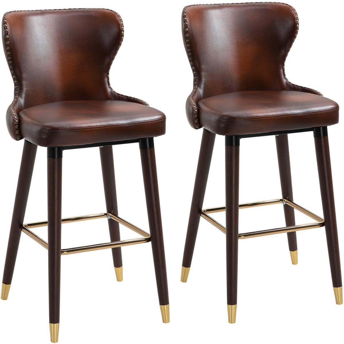 2 Pieces Home Luxury Bar Chairs with Back, PU Leather Upholstery - Brown