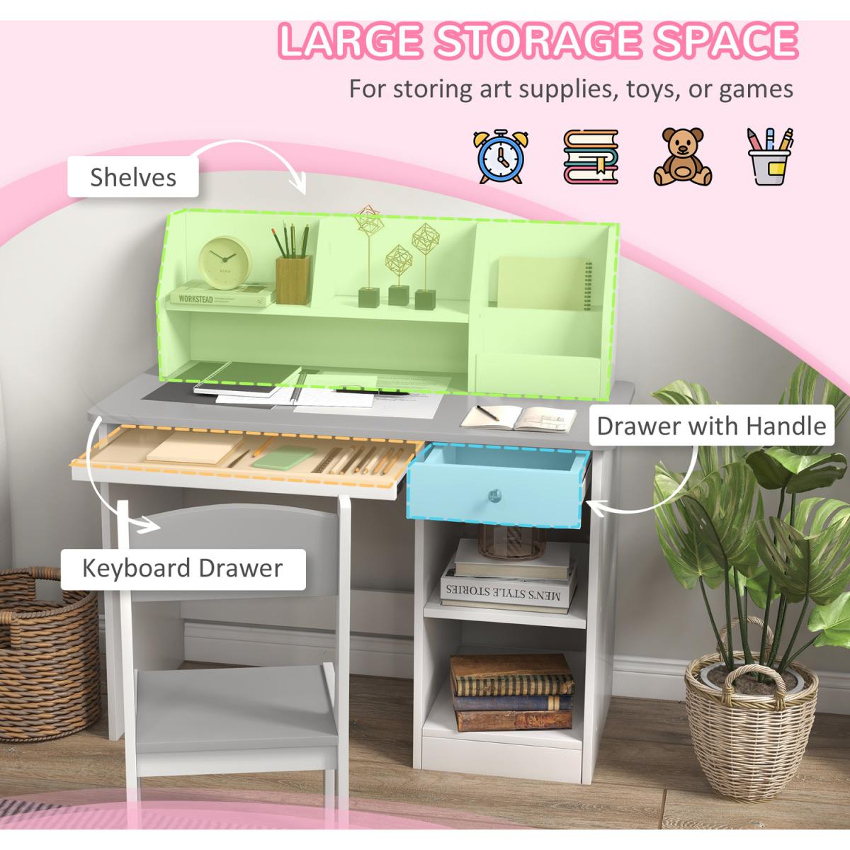 2 Pieces Kids Desk and Chair Set with Storage for 5 to 8 Year Old - Grey
