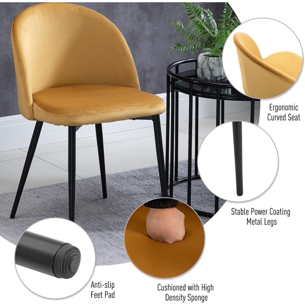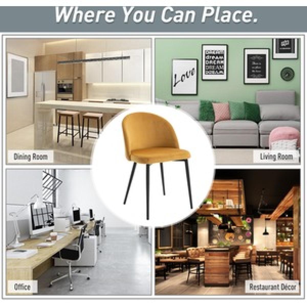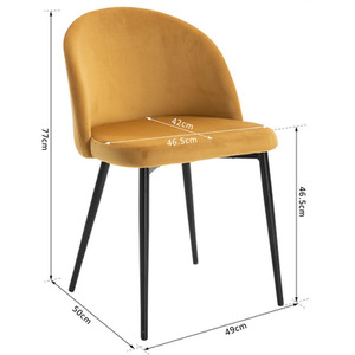 Transform your home and dining space instantly with this set of two chairs from HOMCOM. A sturdy metal frame ensures stability and durability. Armless design with smoothly curved lines gives both seats a soft and elegant look that works almost everywhere. Comfortable as it is beautiful, they combine a curved back for you to lean into, deep cushioning on the seats and a wide seat, with four long and angled metal legs that provide stability and balance, whilst the velvet-feel polyester fabric is soft and smooth on the skin. Perfect for the living room, bedroom and office.
