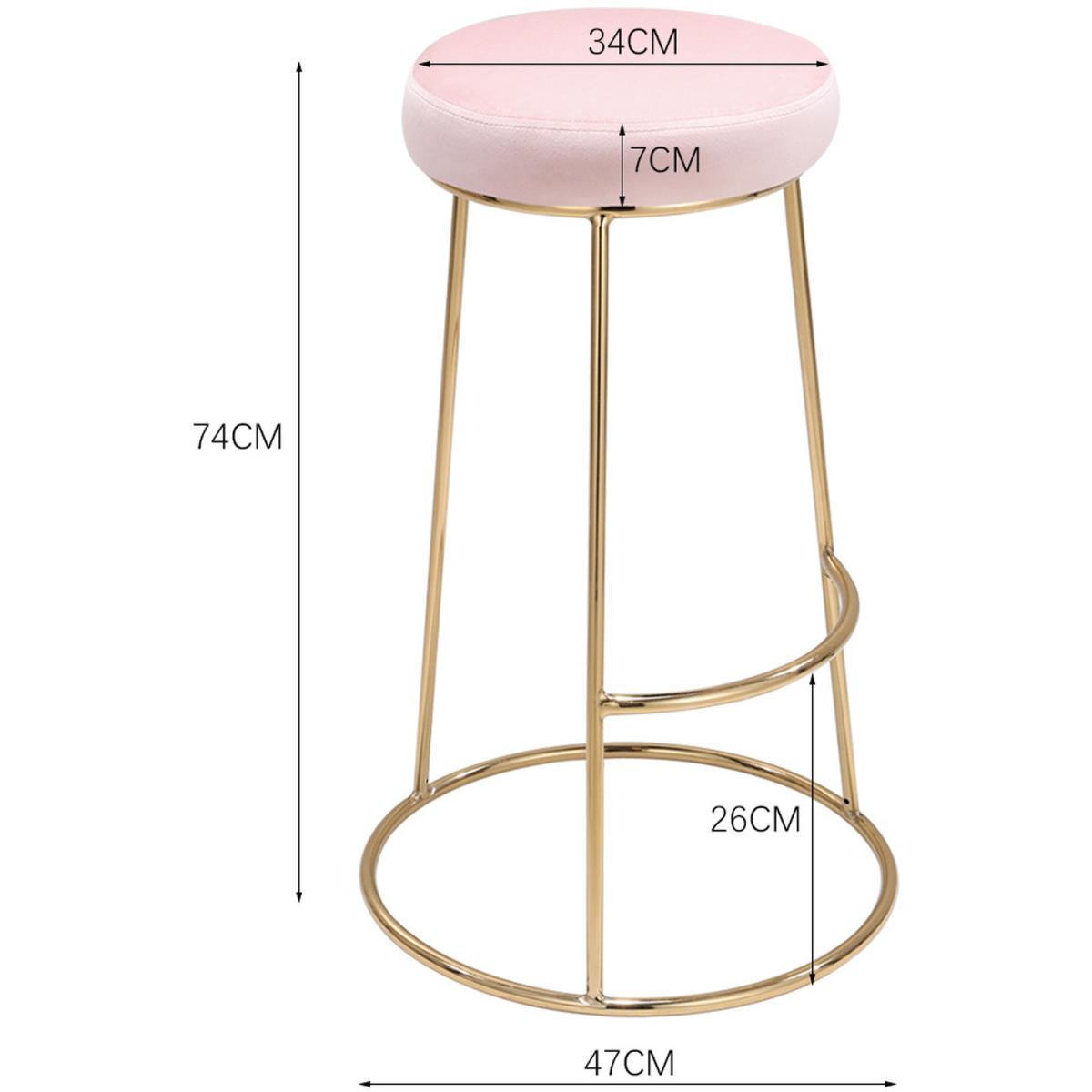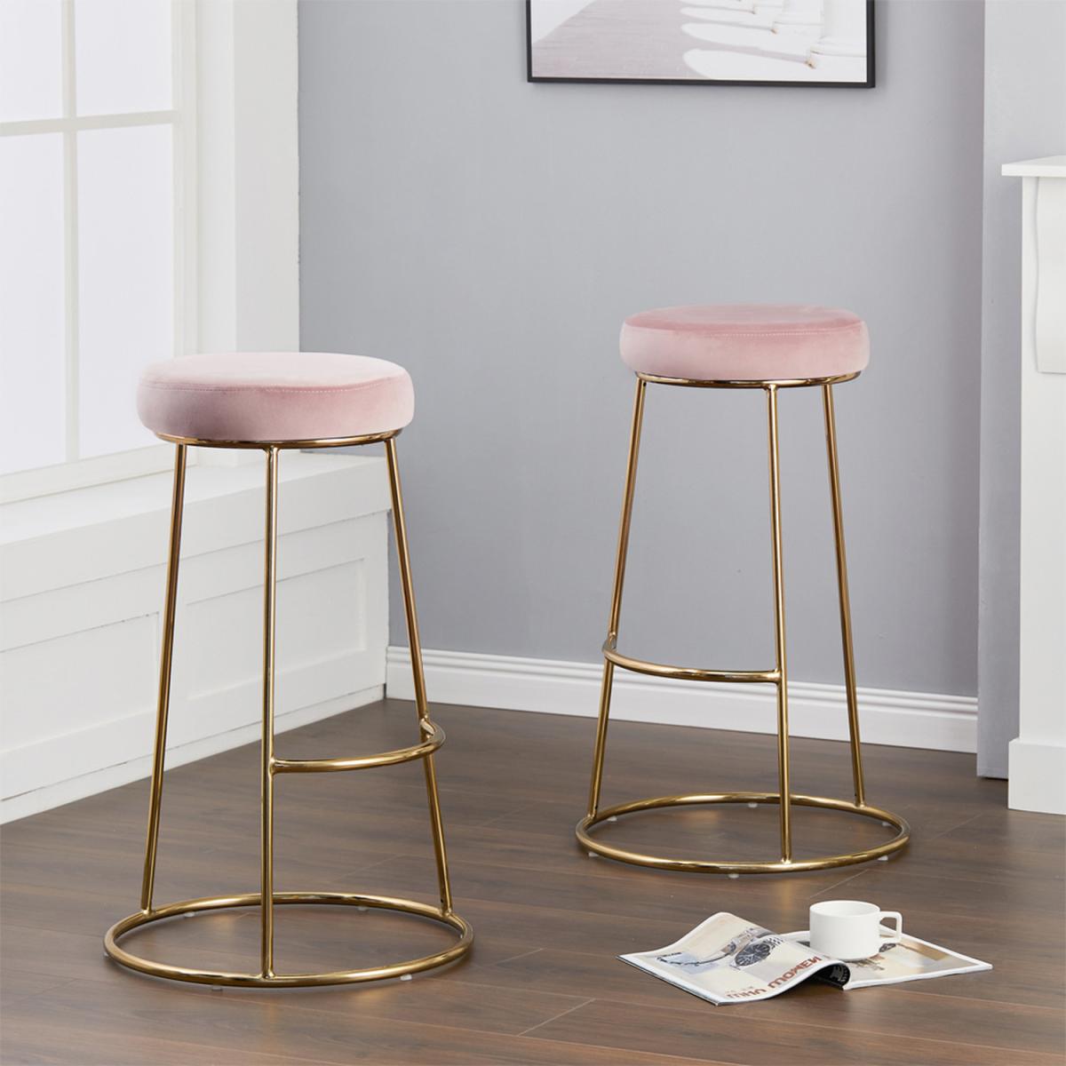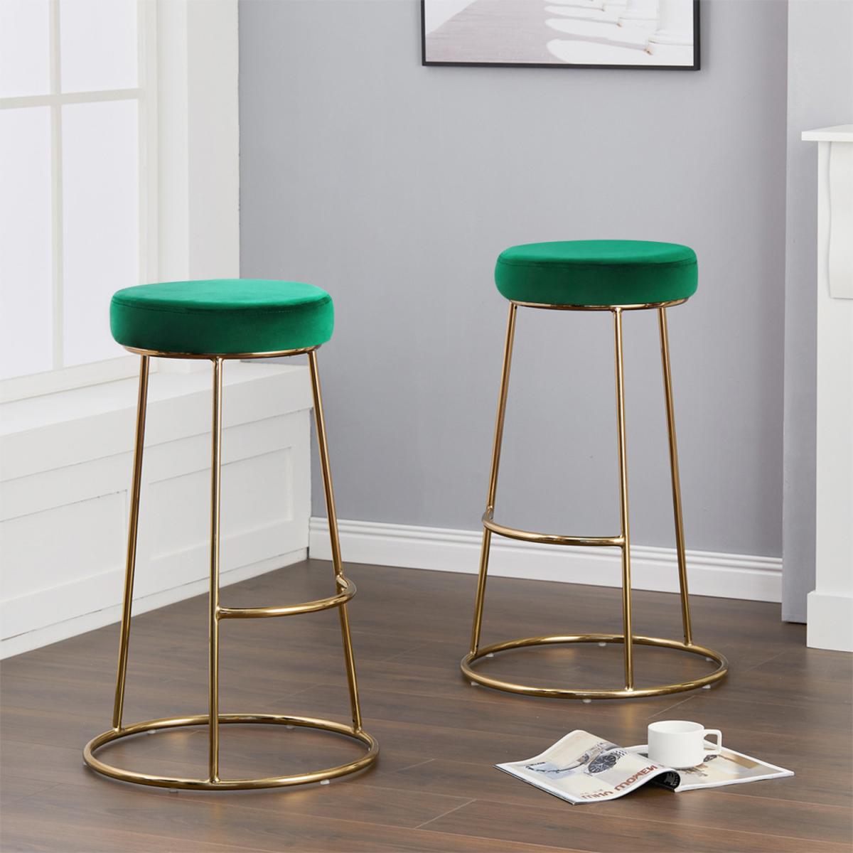 This elegant design with velvet seat and a sturdy golden finish base and legs. Sold in a set of 2. Sturdy steel frame with high load-bearing capacity, plastic foot caps to prevent damage to the floor. Each metal bar stools has a footrest under the seat that provides additional support and stability. This barstool will add a pop of colour to the kitchen, restaurant or modern hotel lounge. Flat packed, Simple assembly steps. Suitable for bars, counter, kitchen island, dining room, coffee room, resting room and so on.